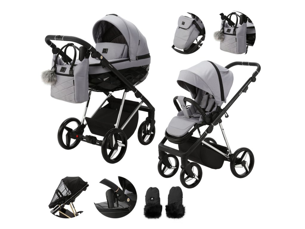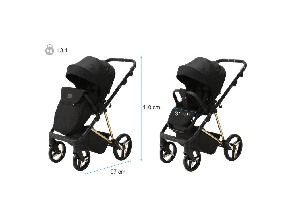 A babakocsi nemcsak elegáns, hanem kényelmes és praktikus is. A szett tartalmaz egy sportülést, amely mindkét irányban felszerelhető az alvázra, és ami a legfontosabb, az alvázzal együtt összecsukható, függetlenül az üléspozíció irányától.