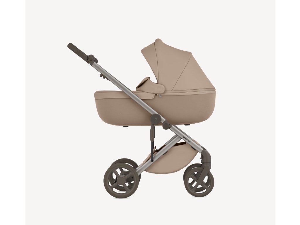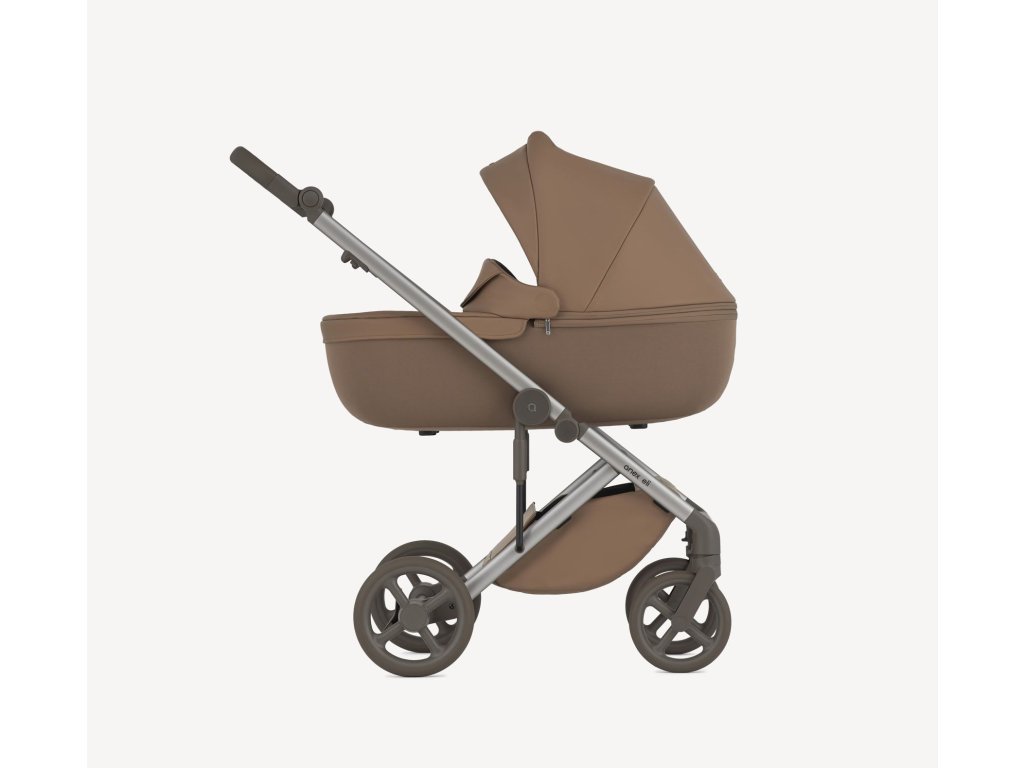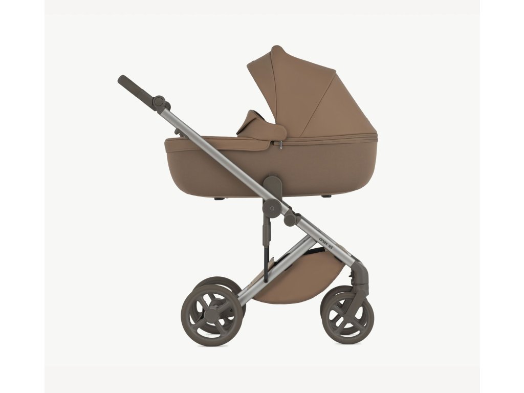 Az Anex Eli egy babakocsi, amelyet az ergonómia, a dizájn és a funkcionalitás jegyében terveztek. A teljes felületen alkalmazott ökobőr természetes és rendkívül elegáns megjelenést kölcsönöz. A kisebb, mégis masszív kerekek simán gurulnak a városi utakon, míg a kompakt, praktikus táska mindent elnyel, amire a szülőknek és a babának szüksége lehet utazás közben.