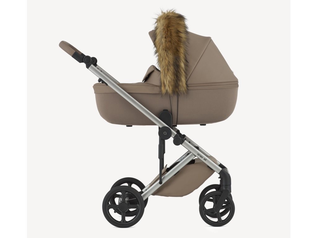 Praktikus és stílusos kiegészítő a hideg hónapokra. A műszőrme szegély plusz szigetelést biztosít, megvédi a babát a széltől és hótól, miközben elegáns megjelenést kölcsönöz a babakocsinak.