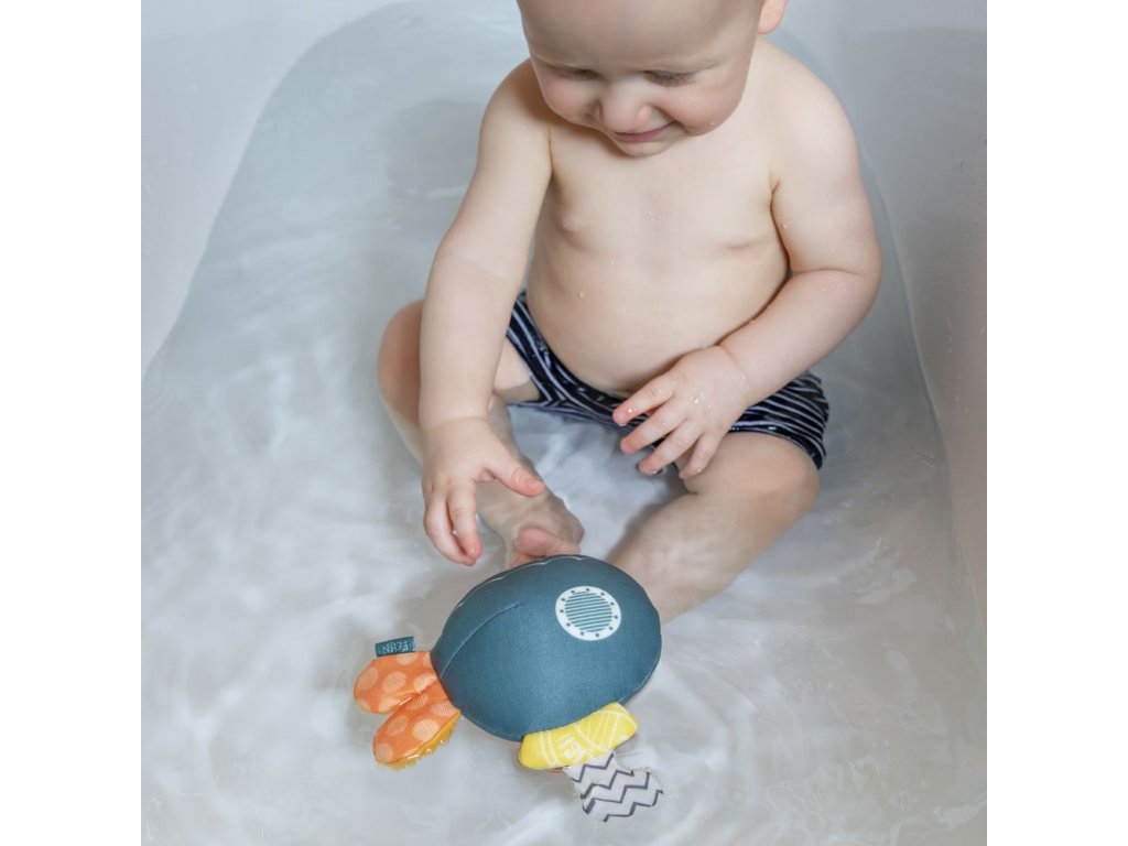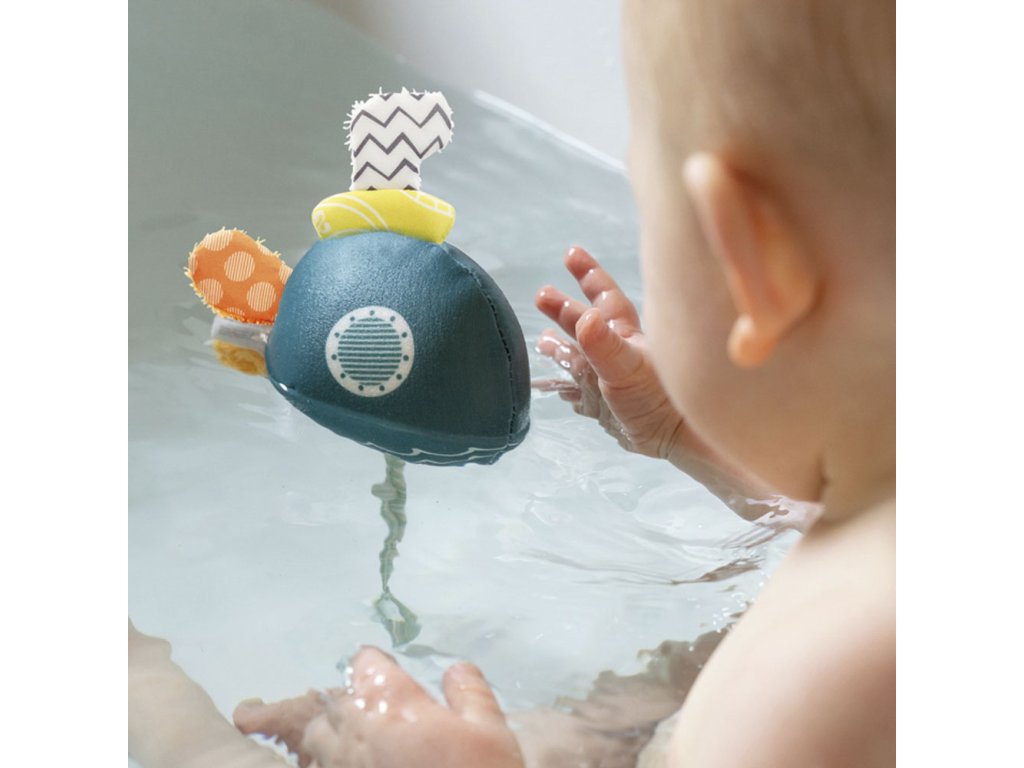 Lebegő tengeralattjáróval a gyerek lesz a kapitány. A játék tapadókoronggal rögzíthető a fürdőkád aljához, és a víz alatt és a felszínen is lebeghet. Az integrált susogó papír szorításra hív, így fejleszti a gyermek érzékszerveit és motorikus készségeit. A tengeralattjáró nagyszerű társ minden úszáshoz.
