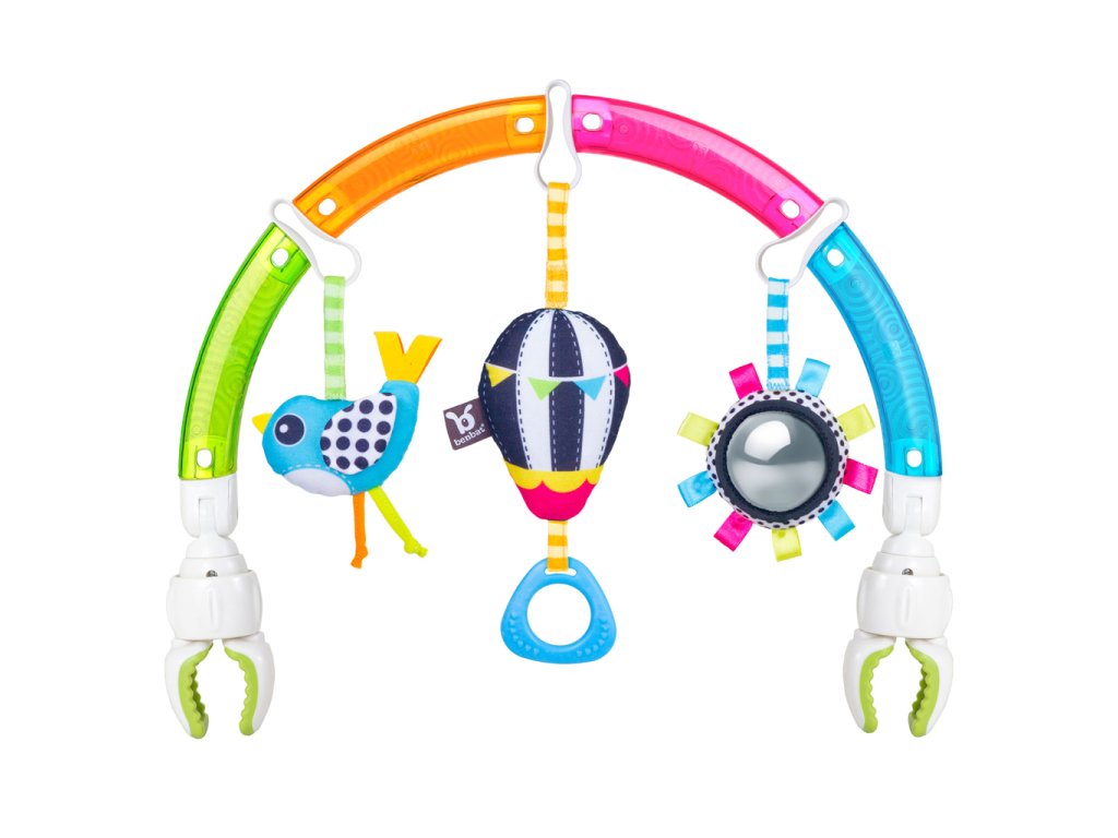 A többfunkciós játszóhíd leköti gyermekét, és lehetőséget ad neki, hogy bárhol és bármikor tanuljon. A híd kétoldalas, és számos fejlesztőjátékot tartalmaz – mindegyiknek egyedi megjelenése van. Minden játék levehető és kétoldalas – fekete-fehér és színes oldal. Állítható csipeszekkel univerzálisan rögzíthető babakocsikhoz, autósülésekhez vagy kiságyakhoz.Tulajdonságok: