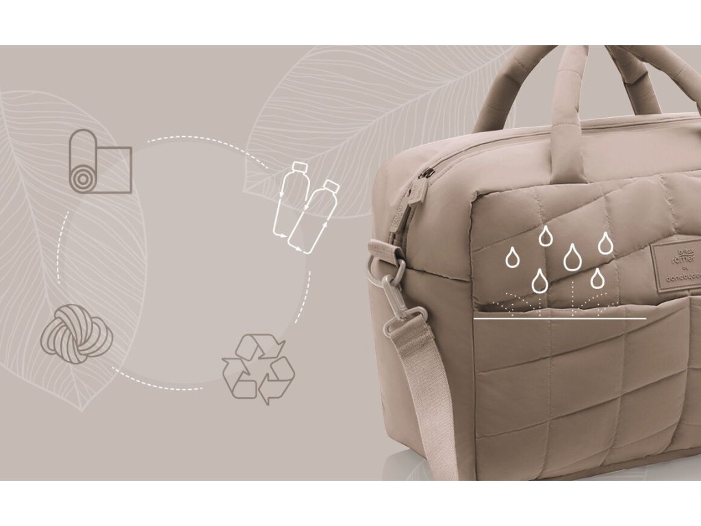 A táska és a pelenkázóalátét 48 újrahasznosított PET-palackból készült.