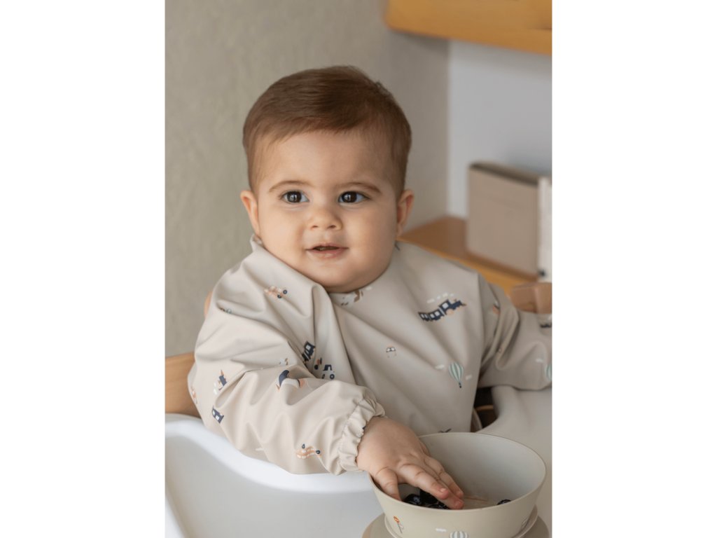 Vízálló hosszú ujjú előke – teljes fedést biztosít étkezés közben