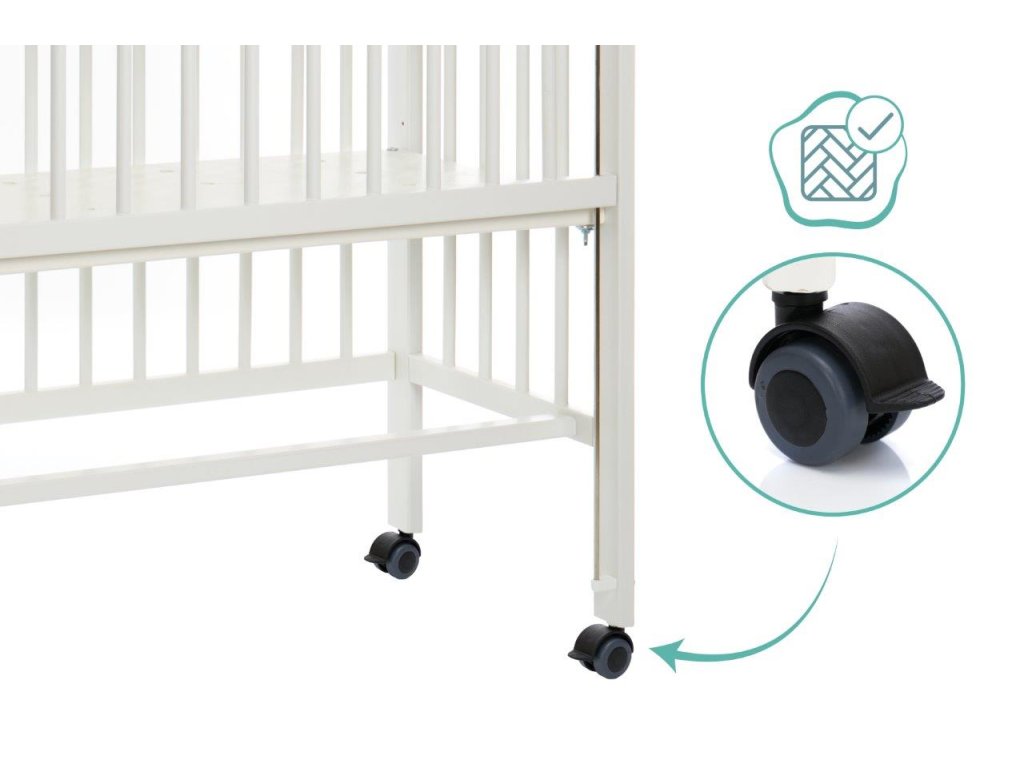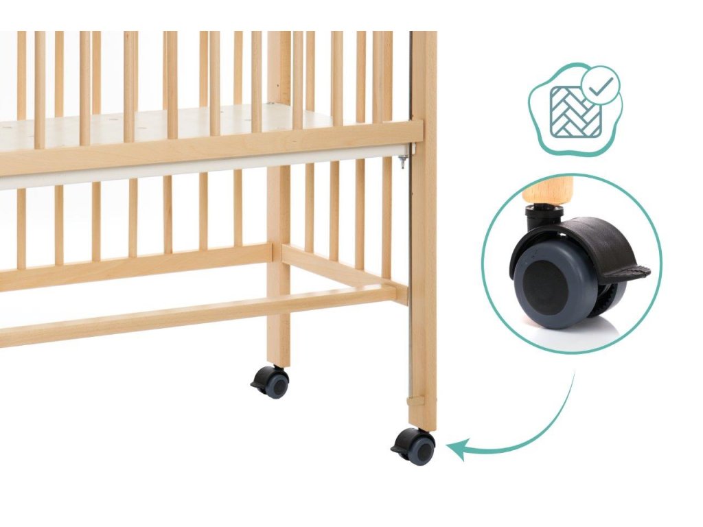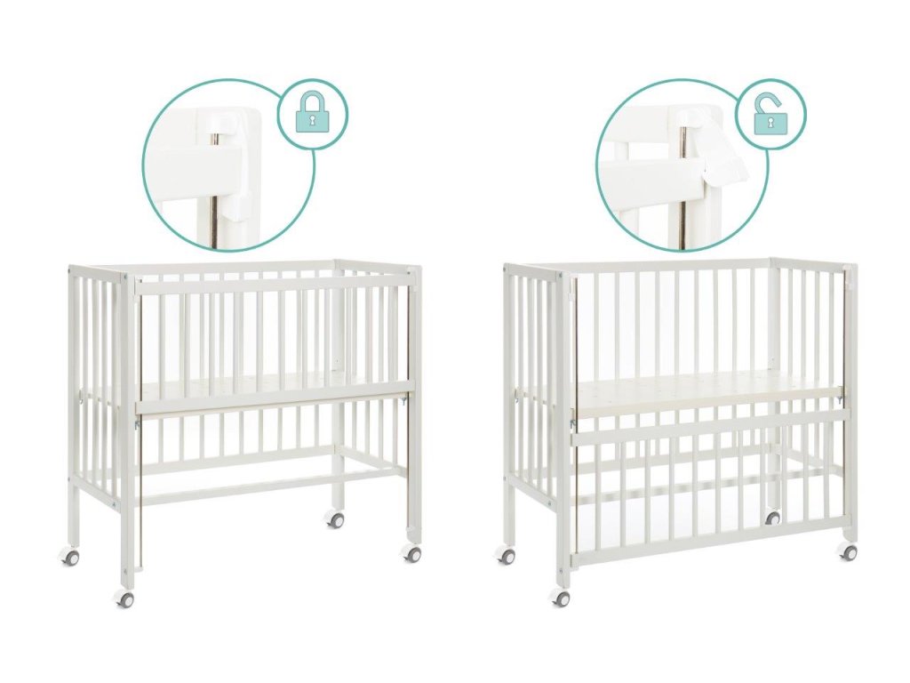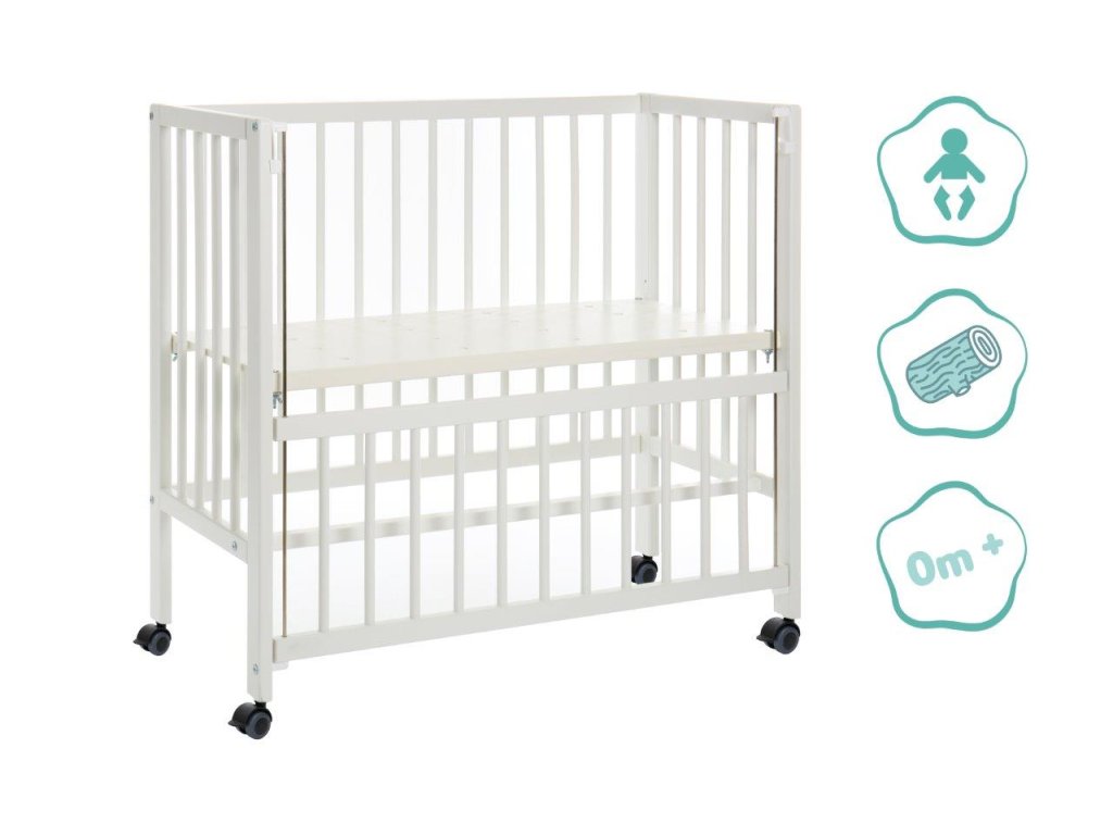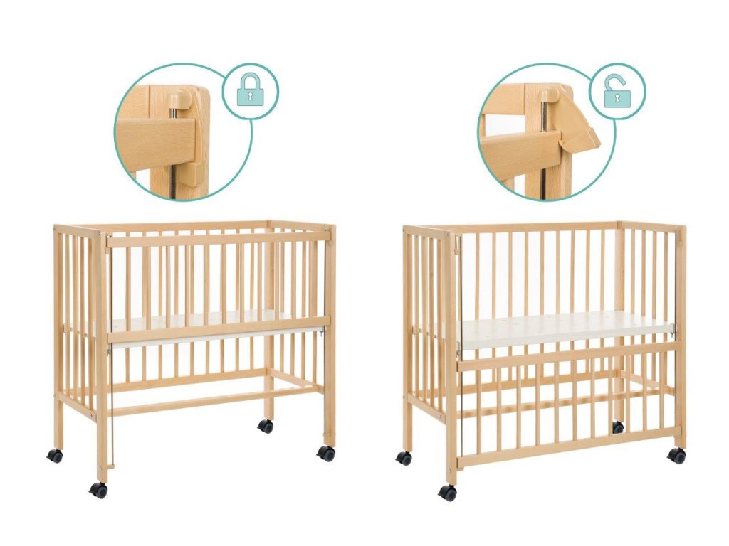 A 90 centiméter hosszú és 40 centi széles kerekeken álló kiságy napközben gyorsan félrecsúszik másnap estig, vagy szociális ágyként szolgál. Kihúzható ágyként a hevederek mindig szorosan rögzítik gyermeke hálóját a nagy szülőágyhoz. Könnyen rögzíthető anélkül, hogy nyomot hagyna. Szinte kevés időbe telik a leválasztás is. A négy simán futó keréknek köszönhetően a kiságy napközben gyorsan eltűnhet egy sarokba, ahol nem lesz útban. De ha a konyhába, a nappaliba vagy a dolgozószobába is szüksége van egy kiságyra, egyszerűen zárja le a nyitott oldalt az integrált tolóoldal segítségével, és így teremtsen biztonságos és mobil nappali helyet a legkisebbek számára. Éjjel-nappal az öt pozícióban állítható magasságú talp biztosítja a mindig szükséges rugalmasságot. A nyitott oldalaknak és a perforált rácsnak köszönhetően babájának mindig elegendő friss levegője van, és nem akadályozza a környező kilátást. A tömör bükkfa biztosítja a szükséges stabilitást és egyben hosszú élettartamot - akár napi mozgás mellett is.