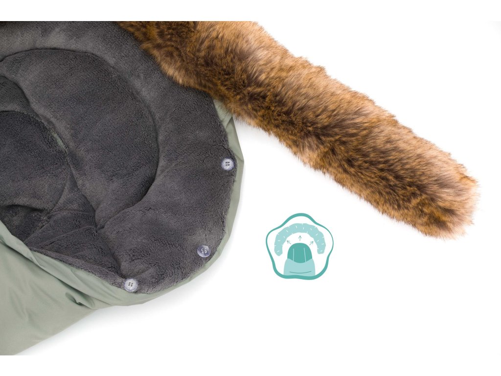 - a puha, levehető műszőrme gallér különleges megjelenést kölcsönöz a babakocsinak vagy az autósülésnek