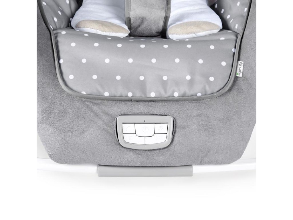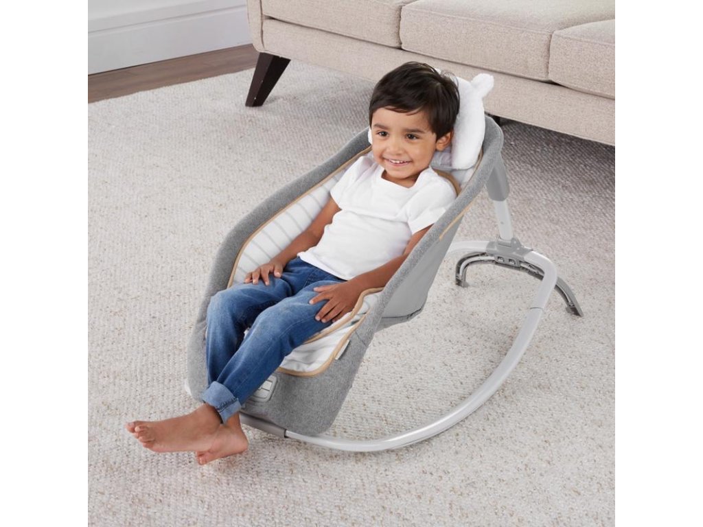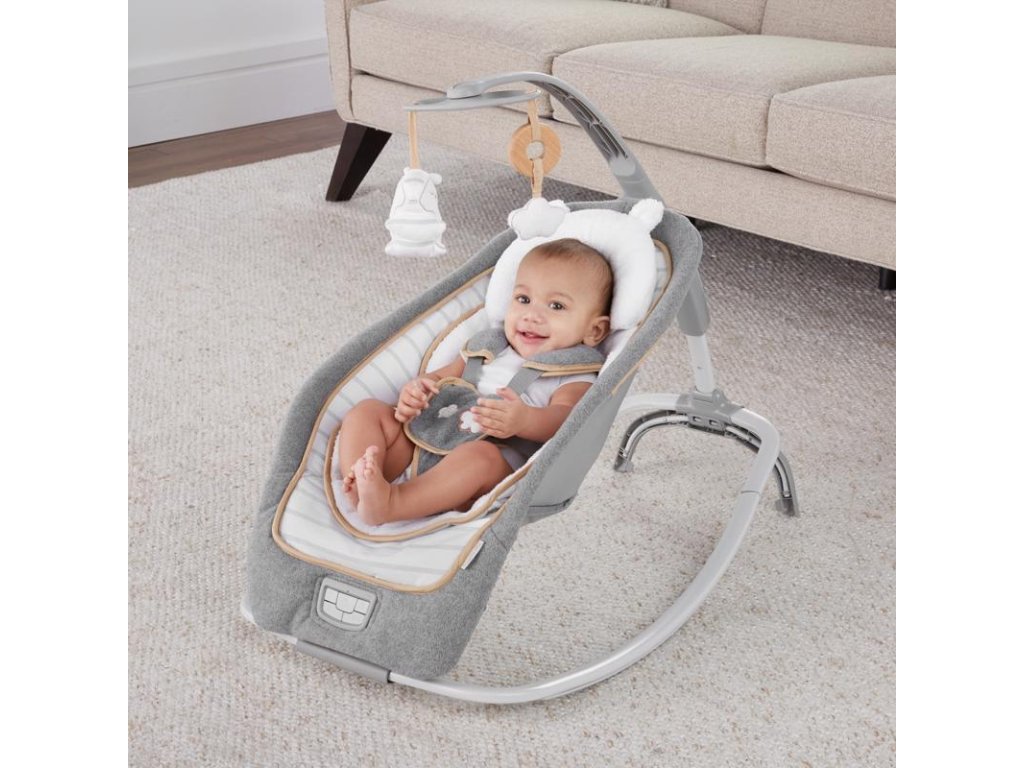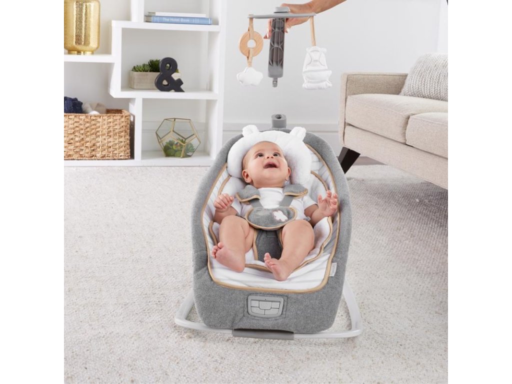 A legelegánsabb és legmodernebb baba hintaszék, amit csak el lehet képzelni! Ez a modern Ingenuity hintaszék egyedülállóan három különböző dönthető pozíciót kínál, hogy a baba a lehető legnagyobb kényelemben pihenhessen. Talán a legjobb része ennek a csodás hintaszéknek a lenyűgöző megjelenése és a prémium, előkelő anyagok és szövetek használata. A hintaszéket könnyedén rögzítheti, és így egy helyben maradó rezgő székké alakíthatja, amely nyugtató vibrációval, természet hangjaival és zenével kényezteti a babát. A játékforgó eltávolítása után egy kényelmes hintaszékké válik, amit a kis hercegnője imádni fog. A rendkívül puha szövetek luxus kényelmet biztosítanak, míg az újszülött betét és a fejtámasz külön támogatást nyújt a kisebb babáknak, és egyszerűen eltávolíthatók, ahogy a gyermek növekszik. Ez a modern kialakítás szinte teljesen laposra összecsukható, így a tárolás és a szállítás gyerekjáték lesz. Ön imádni fogja, ahogy tökéletesen illeszkedik az otthonába, és kis kincse élvezni fogja a különleges puhaságot.