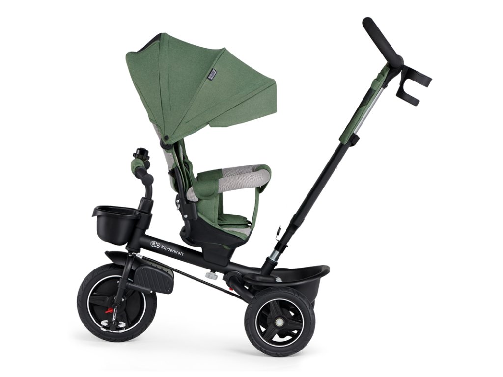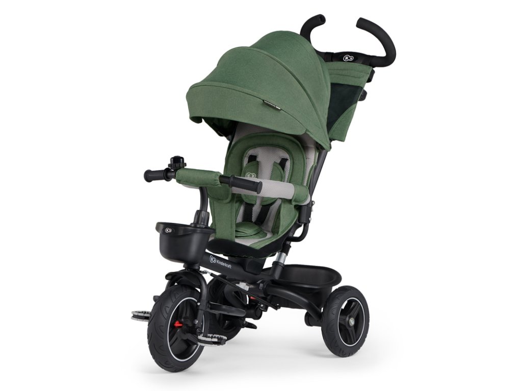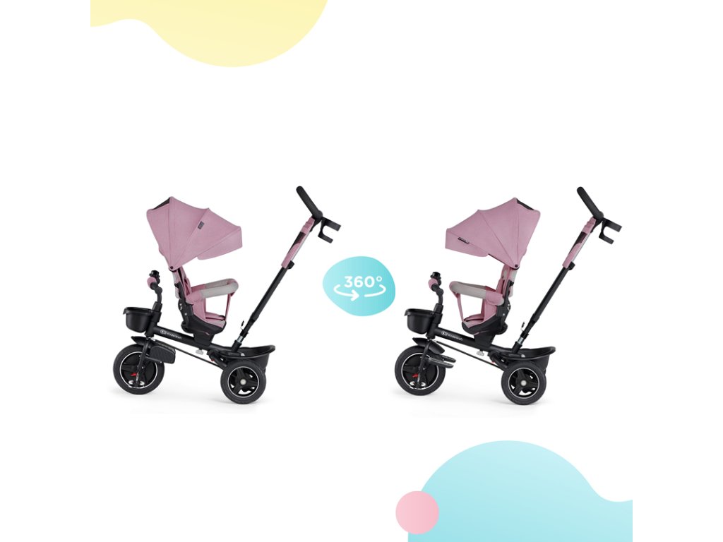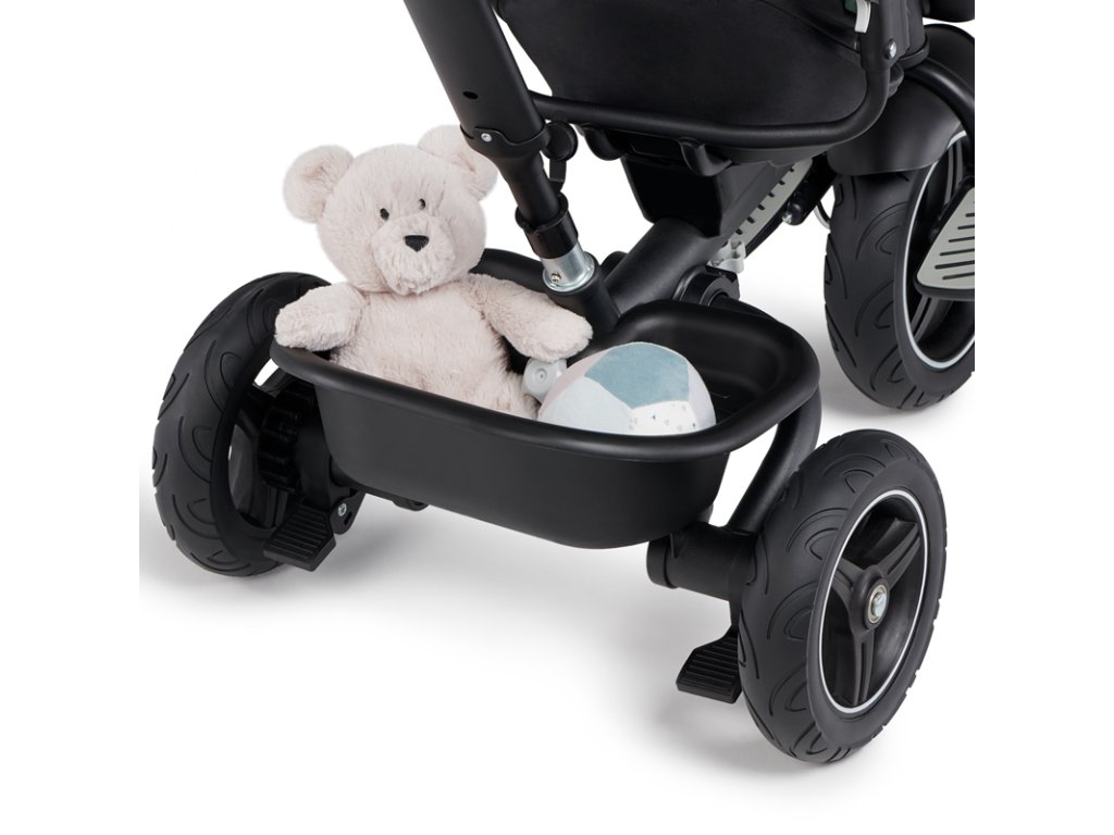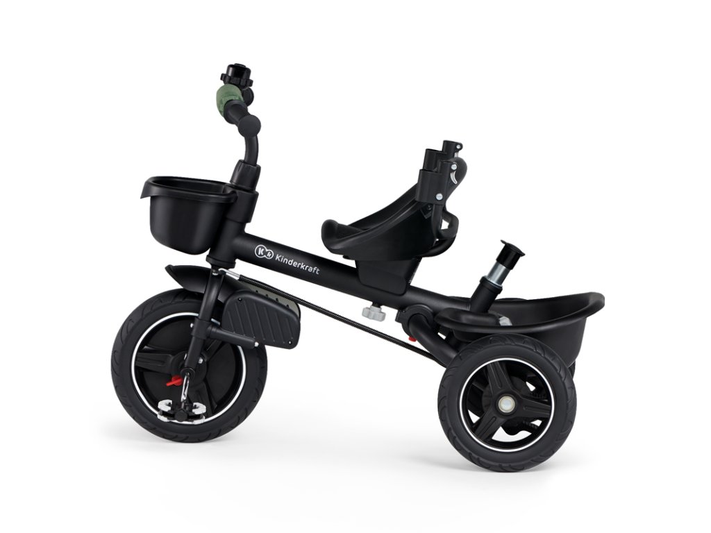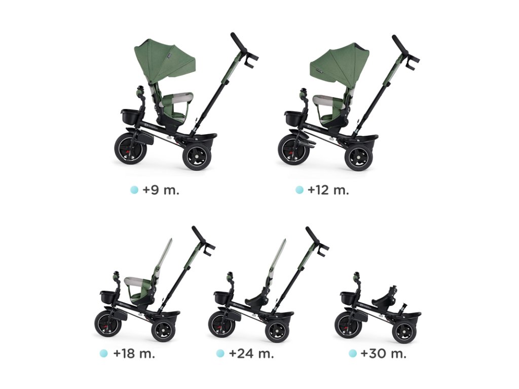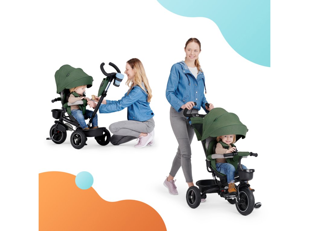A bicikli 360°-ban elforgatható üléssel rendelkezik, amely a szülővel vagy a menetiránnyal szemben helyezhető el – a gyermek magabiztosabbnak érzi magát, és már az elején szem előtt lesz. Kényelmes, puha huzatú ülés és magas háttámla teszi teljessé a vezetési kényelmet, a gerincnek is megfelelő tartást biztosít a világ meghódítása közben. A kerékpár hárompontos övekkel és kivehető fogantyúval van felszerelve, amely levehető a tricikliről, amikor a gyermek készen áll az önálló utazásra.