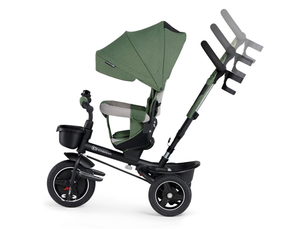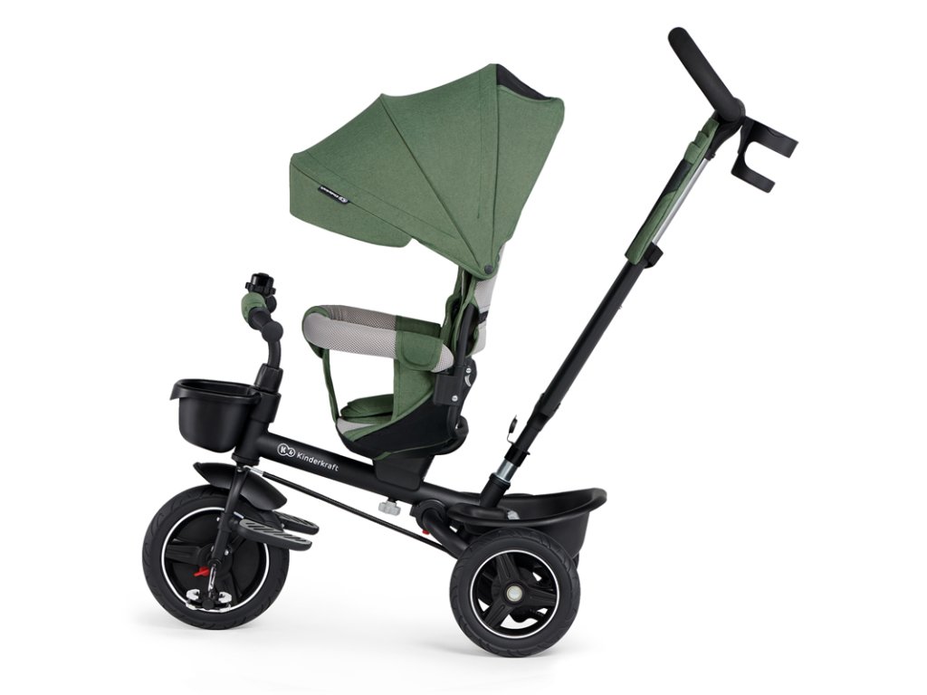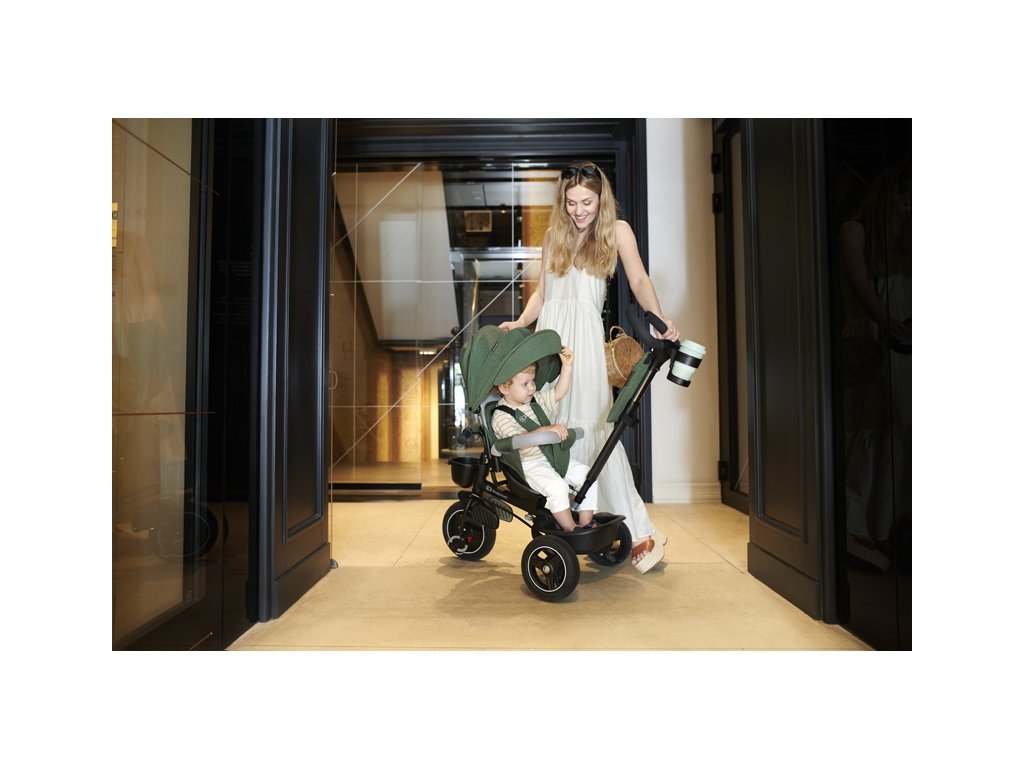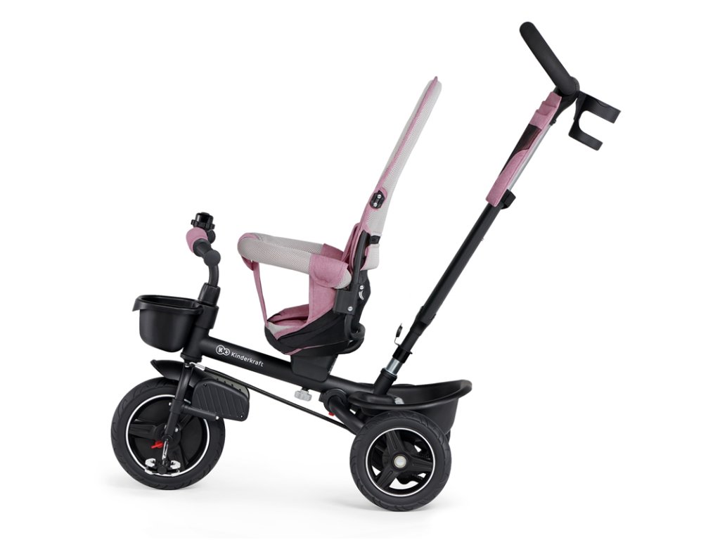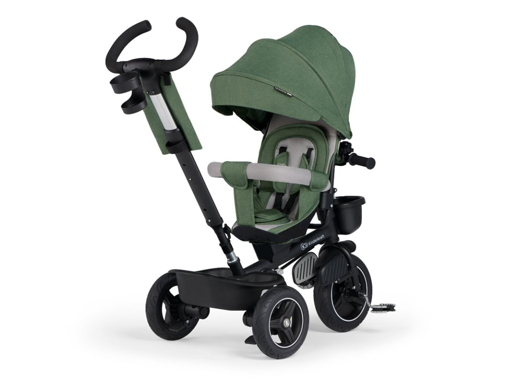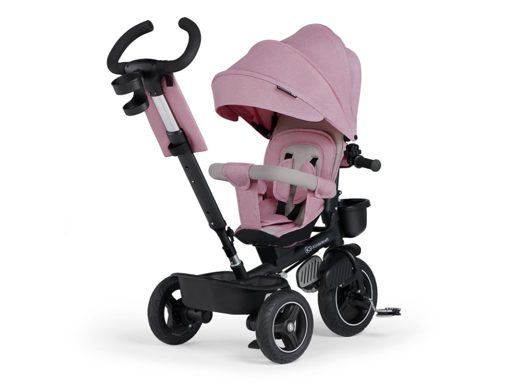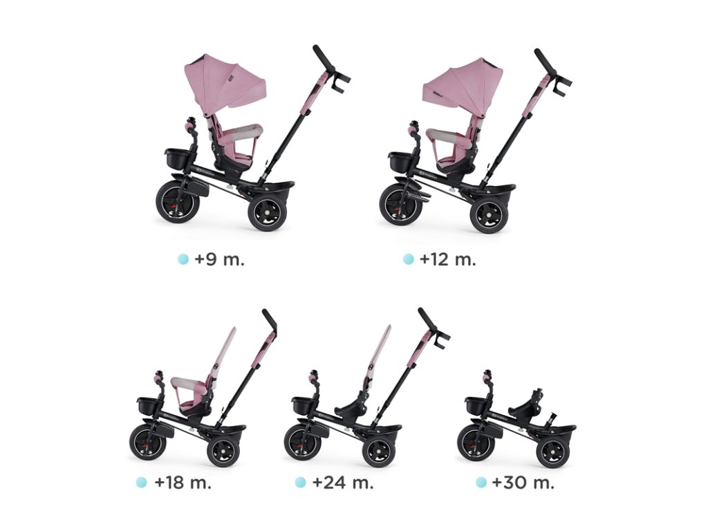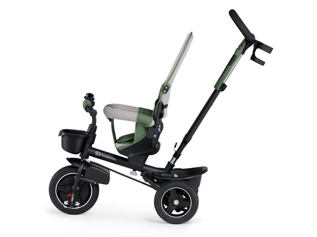 A bicikli 360°-ban elforgatható üléssel rendelkezik, amely a szülővel vagy a menetiránnyal szemben helyezhető el – a gyermek magabiztosabbnak érzi magát, és már az elején szem előtt lesz. Kényelmes, puha huzatú ülés és magas háttámla teszi teljessé a vezetési kényelmet, a gerincnek is megfelelő tartást biztosít a világ meghódítása közben. A kerékpár hárompontos övekkel és kivehető fogantyúval van felszerelve, amely levehető a tricikliről, amikor a gyermek készen áll az önálló utazásra.