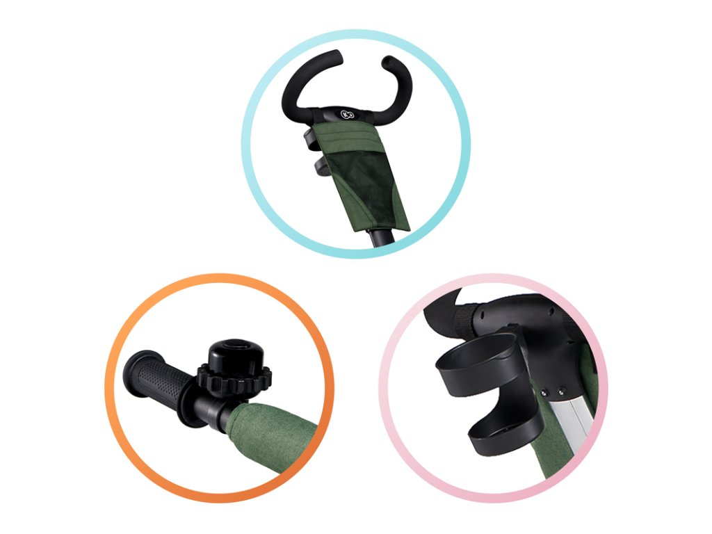 – további kiegészítők minden sétát megkönnyítenek. Két kosárba (az egyik nagy hátul, a másik kisebb elöl) minden gyerekkellék elfér.