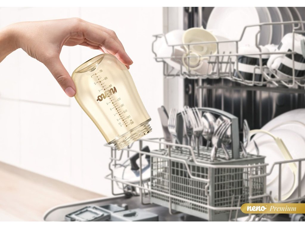 - A Neno Mio 2 PPSU anyagból készült, amely ellenáll a magas hőmérsékleteknek. Így biztosítva van, hogy a sterilizálás során nem deformálódik.