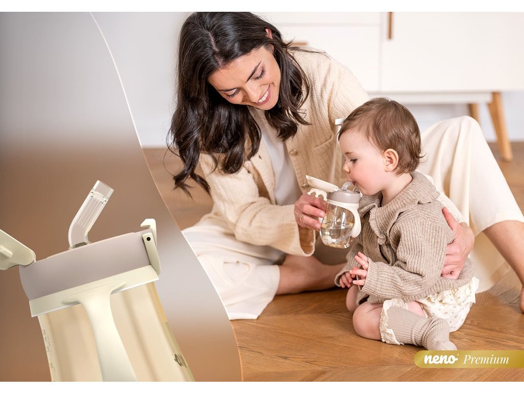 Neno Mio 2 egy praktikus alternatívája a csecsemőpalackoknak és egy nagyszerű segédeszköz, hogy a gyerekeket önálló ivásra tanítsa. Az áramlásellenálló és ütésálló palack szívószállal rendelkezik, mely súlyzóval van ellátva, így a gyermek különböző szögekből is képes inni. A szívószál használata a szájban lévő izmokat is fejleszti, elősegítve a megfelelő nyelési szokások kialakítását.- A gyönyörű csomagolás és figyelemfelkeltő design a Neno Mio 2-t tökéletes ajándékká teszi a leendő anyukák számára.