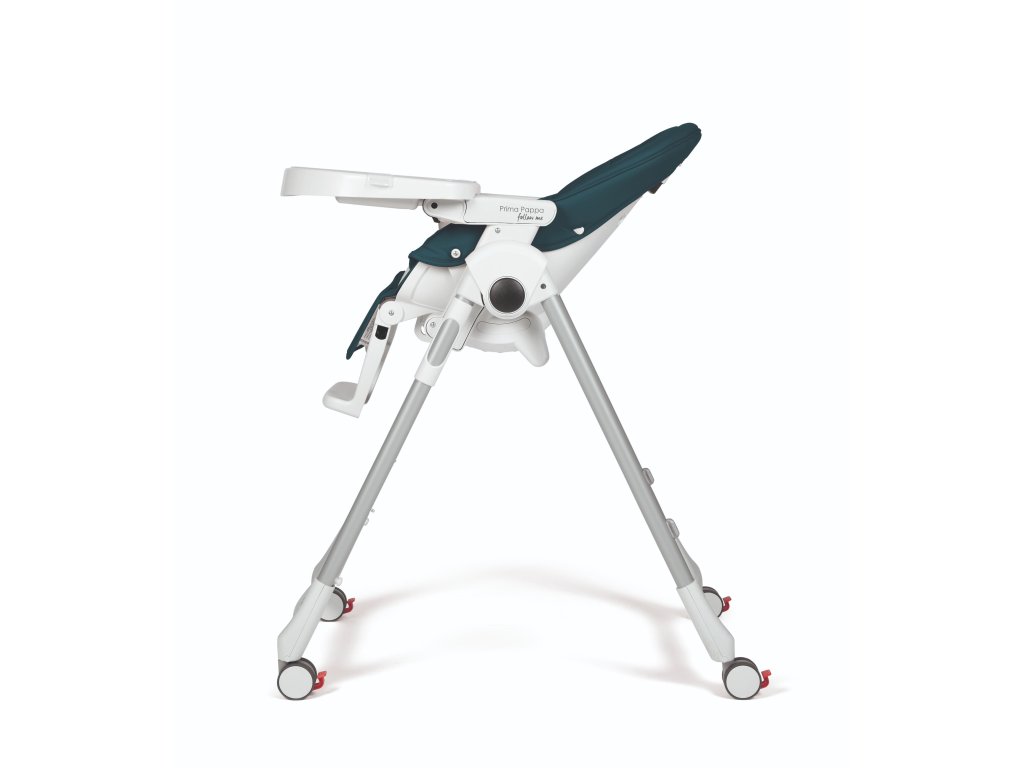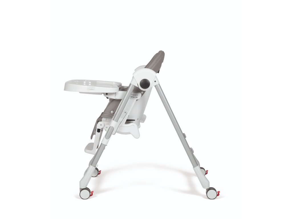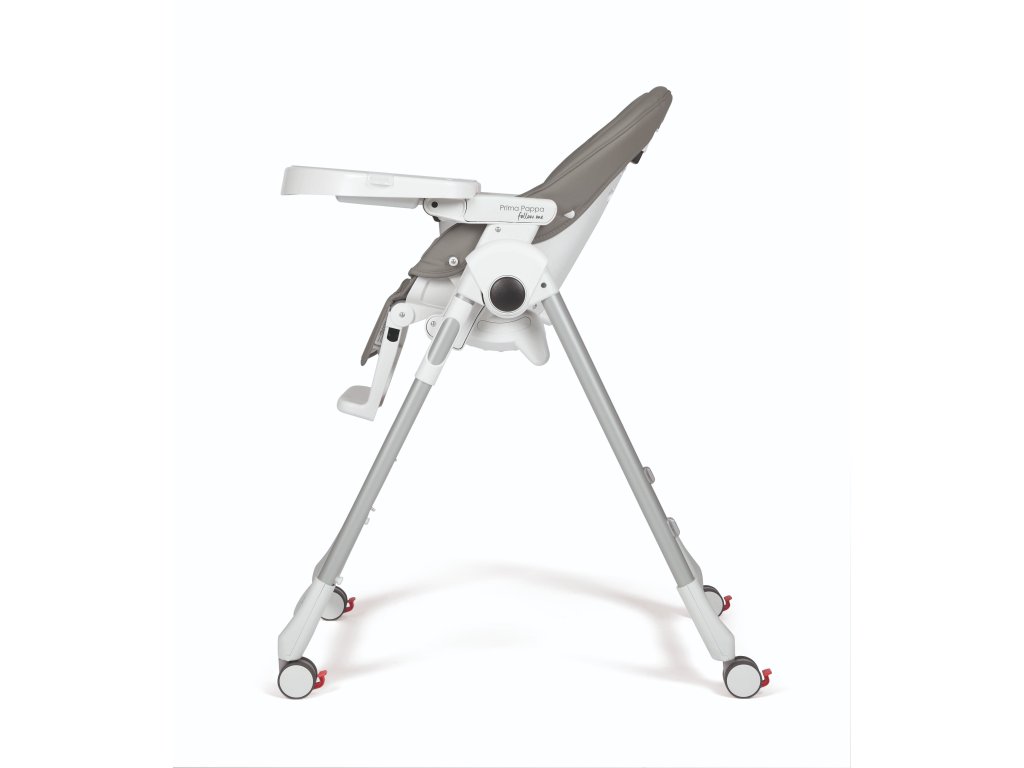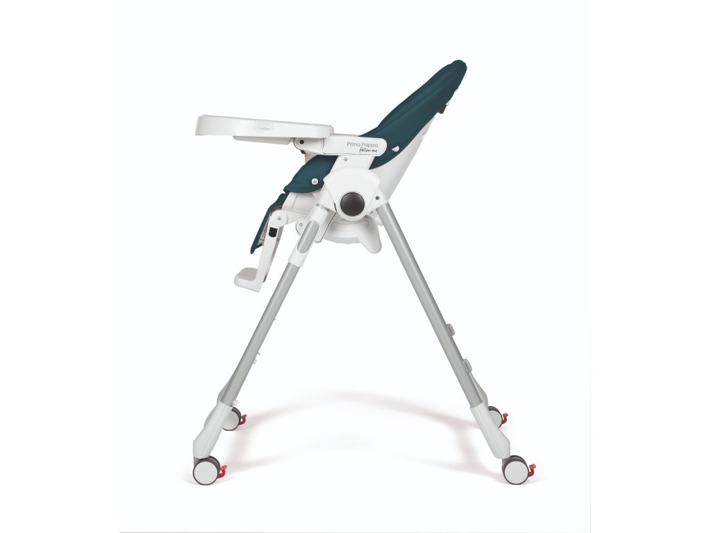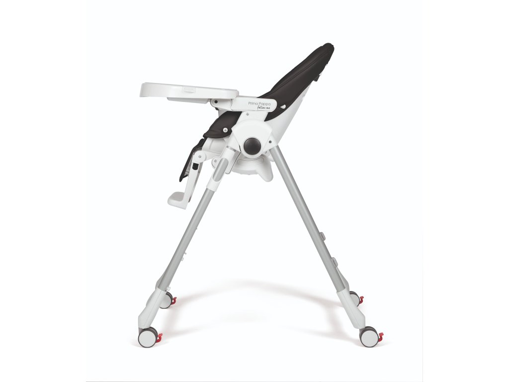 A 4 keréknek köszönhetően könnyedén mozgatható a lakásban. Az egész etetőszék magassága 7 pozícióba állítható, a lábtartó 3, a háttámla pedig 5 pozícióba dönthető (több mint 150°). A dupla, állítható és levehető tálca palacktartóval ellátott, mosogatógépben tisztítható, alsó részén pedig egy biztonsági elválasztó található, amely megakadályozza a gyermek kicsúszását az etetőszékből. Összecsukott állapotban önállóan megáll és kevés helyet foglal.