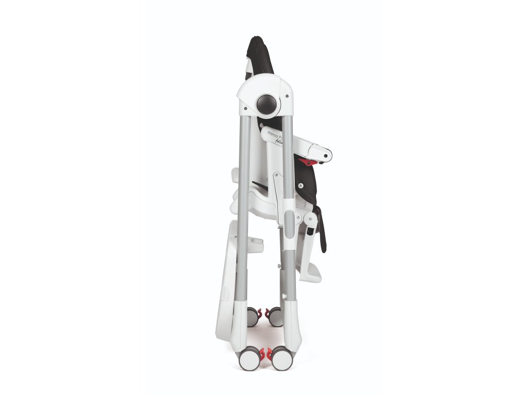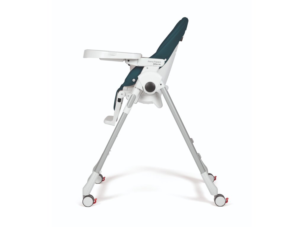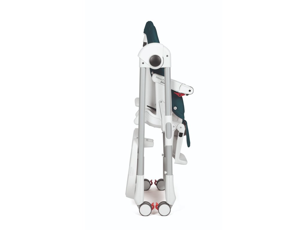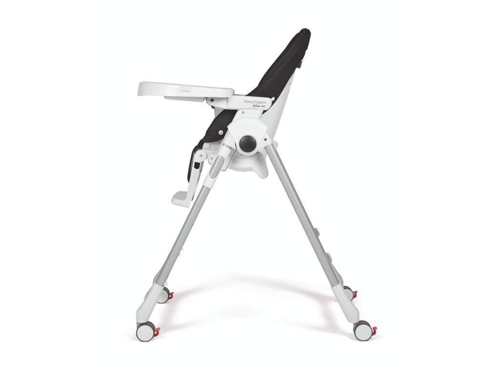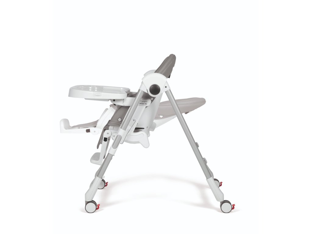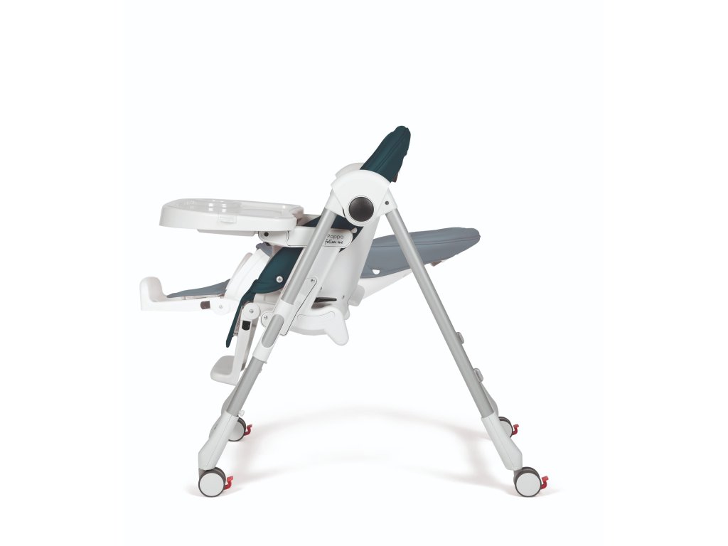 A 4 keréknek köszönhetően könnyedén mozgatható a lakásban. Az egész etetőszék magassága 7 pozícióba állítható, a lábtartó 3, a háttámla pedig 5 pozícióba dönthető (több mint 150°). A dupla, állítható és levehető tálca palacktartóval ellátott, mosogatógépben tisztítható, alsó részén pedig egy biztonsági elválasztó található, amely megakadályozza a gyermek kicsúszását az etetőszékből. Összecsukott állapotban önállóan megáll és kevés helyet foglal.