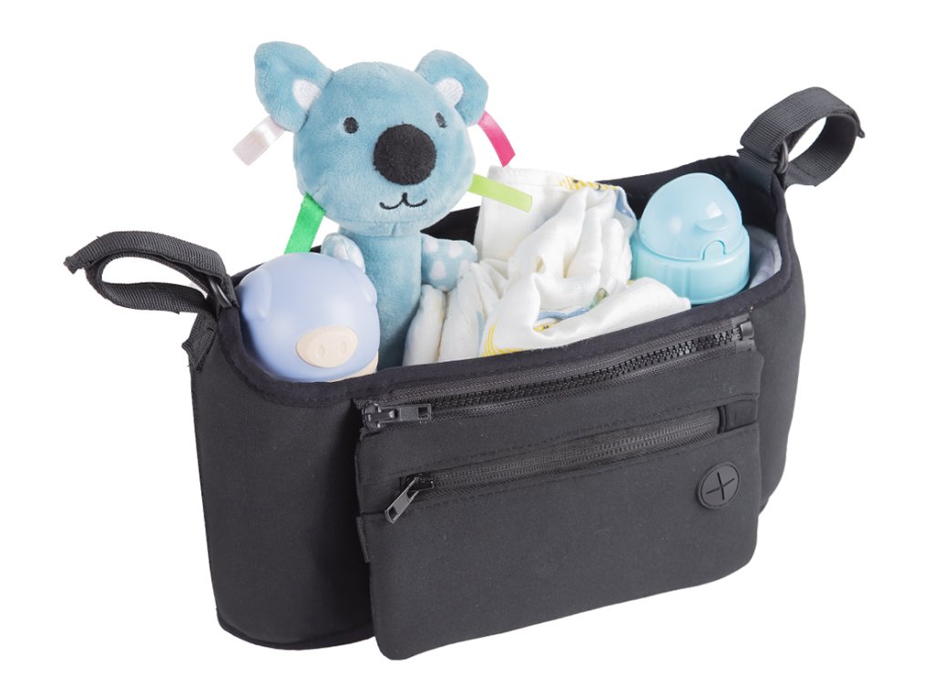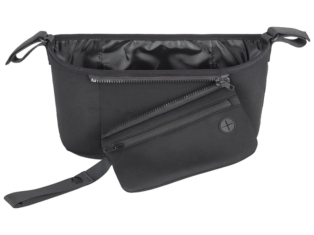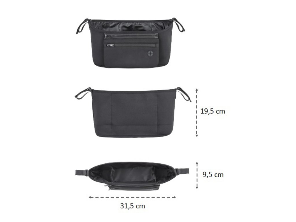 Két oldalsó rekeszben egy üveg, egy termosz vagy egy csésze kávé tárolható. A nagy középső rekeszbe könnyedén elfér mindent, amire szüksége van egy séta vagy kirándulás során. Az elülső kivehető zseb külön is használható. Alkalmas mobiltelefon tárolására, és fejhallgató csatlakozóval is rendelkezik, így babakocsiban hallgathatja kedvenc zenéit vagy beszélhet telefonon. Ha megállsz a játszótéren, egyszerűen cipzározd ki a zsebedet a mobiltelefonoddal és egyéb értéktárgyaiddal, és vigye magával.