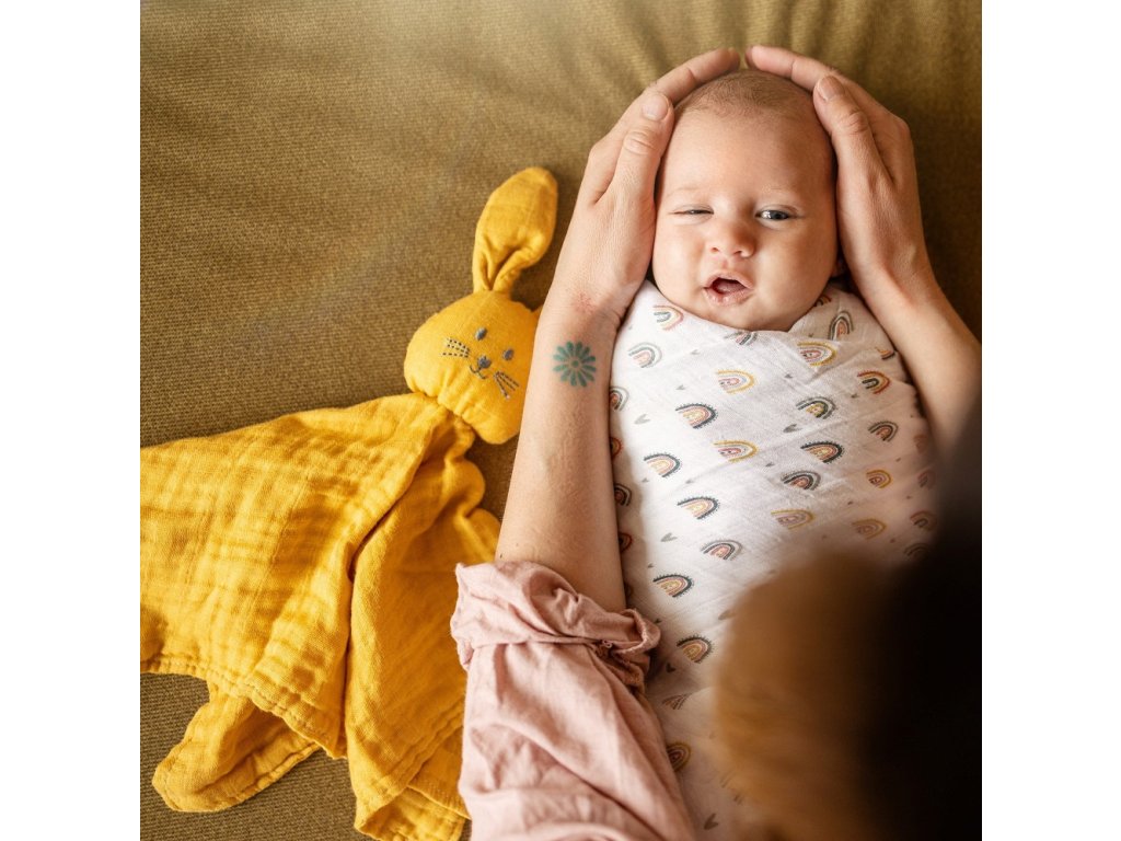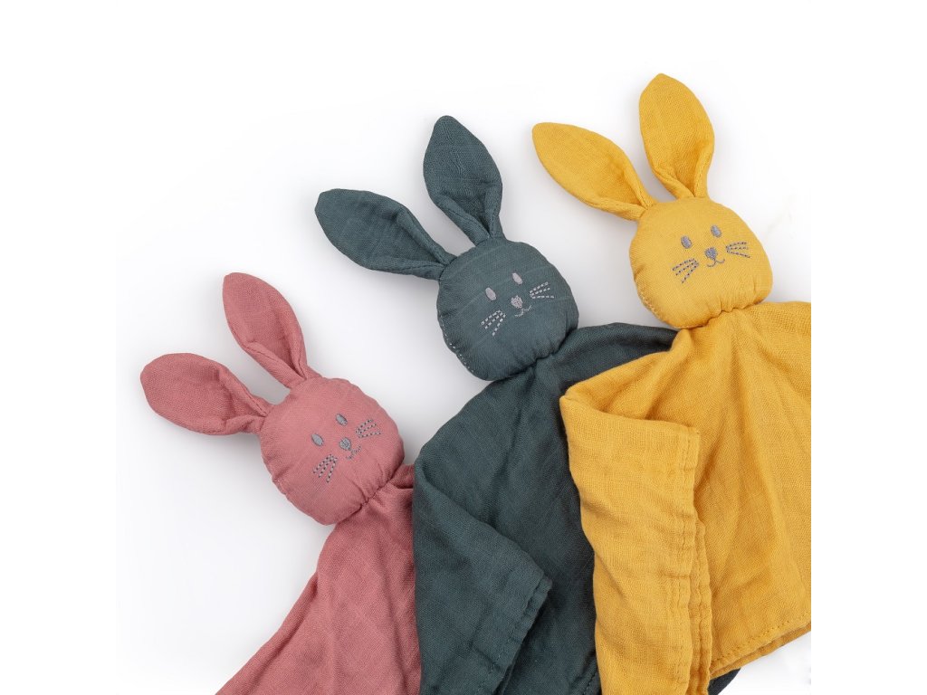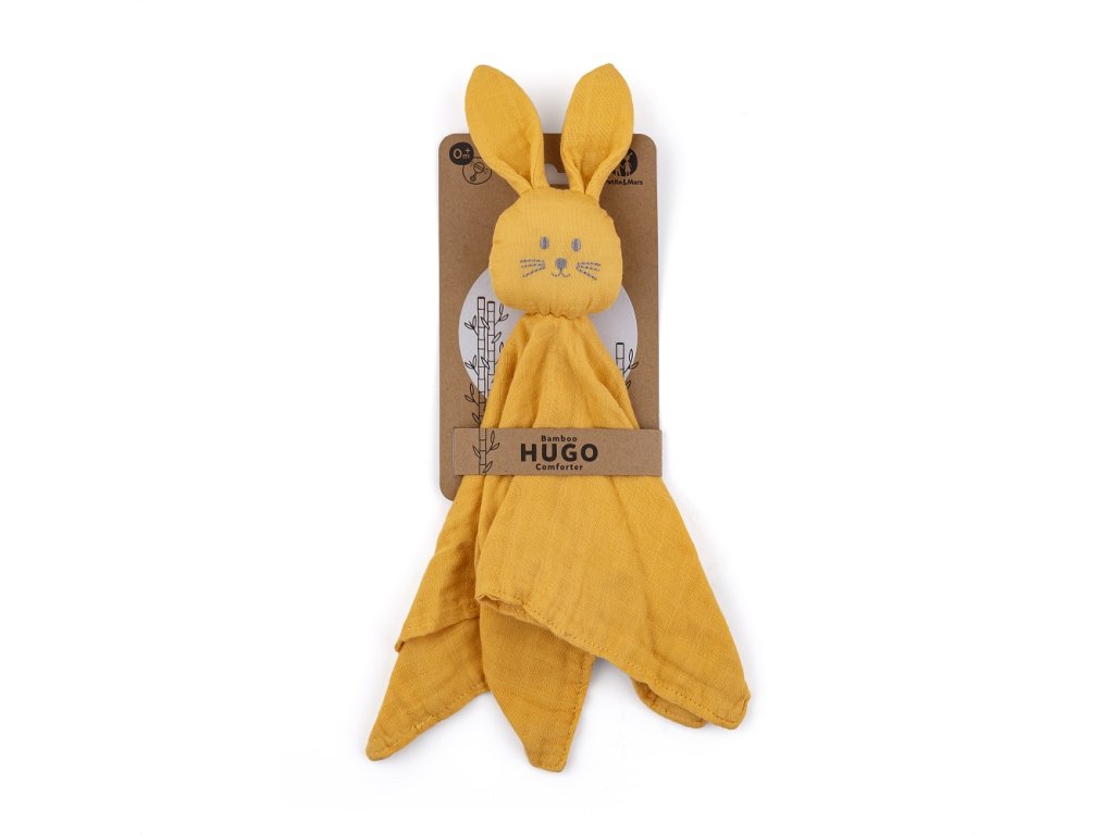 A puha muszlin nyuszinak, Hugonak van egy titkos hobbija. Leginkább az ágyba gömbölyödni és aludni szeret. Remek barát és alvójáték a legkisebb gyerekek számára. Hugo szereti az ölelést, melegség és gyengédség érzését kelti. Senki nincs egyedül vele. Nagyon kellemes és puha tapintású, megnyugtatja a babát egy fárasztó nap után.