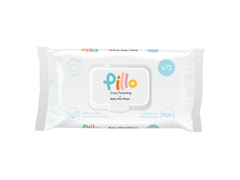 A Pillo baba törlőkendők maximális kíméletességgel lettek kifejlesztve a babák érzékeny bőréhez. 99,6%-ban természetes összetevőket tartalmaznak, köztük Aloe Vera levet és zablevél-kivonatot, amelyek gyengéden tisztítanak, hidratálnak és nyugtatnak. Dermatológiailag tesztelt összetételüknek köszönhetően már újszülött kortól is ideálisak a legérzékenyebb bőr ápolására.