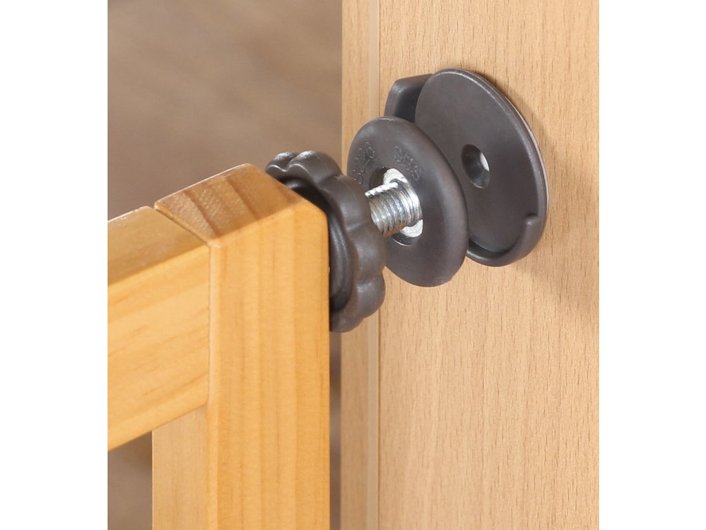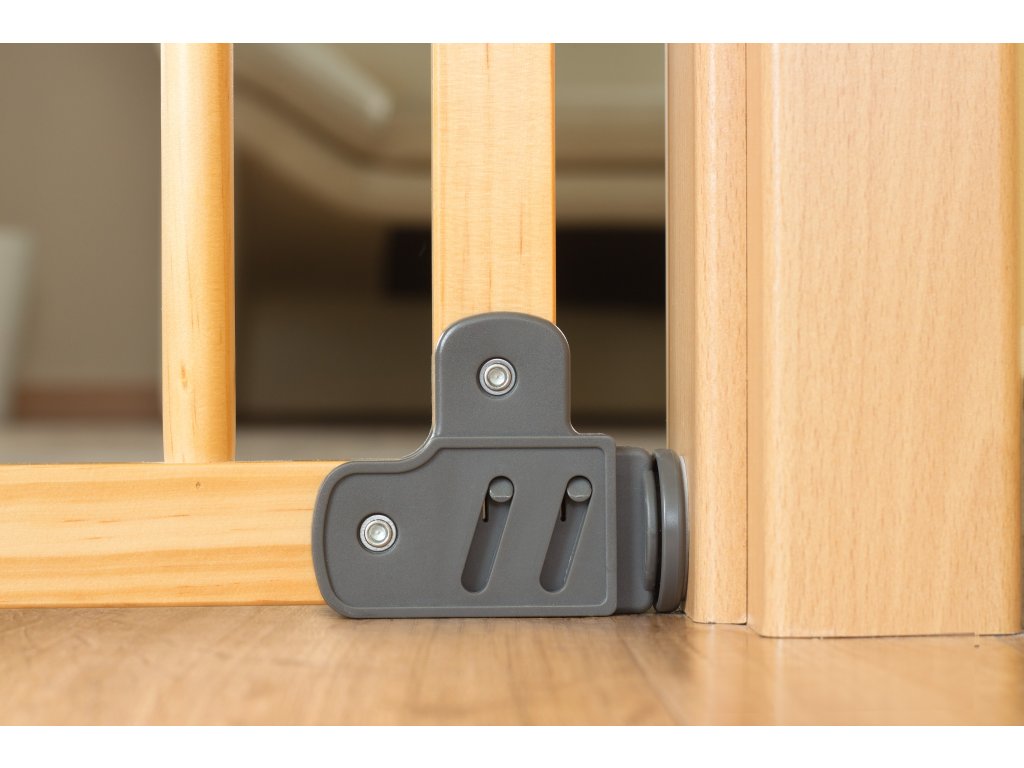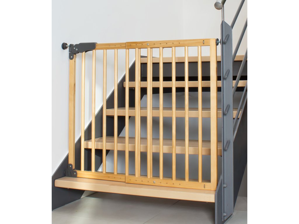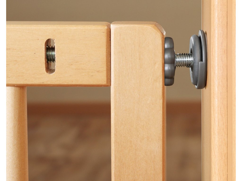Állítható szélességű biztonsági korlát 75 és 104,5 cm közötti átjárókhoz. 2 módon szerelhető fel: fúrás és csavarozás nélkül, függőleges korlátként vagy a falhoz rögzítve. A fúrás nélküli változat használatakor a korlát nem nyitható, hanem teljes egészében eltávolítható. A korlát alkalmas a lépcső tetejére. Az állítható 4 pontos rögzítés egyéni szélességbeállítást biztosít a felső és alsó rögzítési pontokon, így a korlát falakon vagy lépcsőkorlátokon is használható.