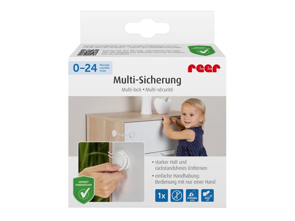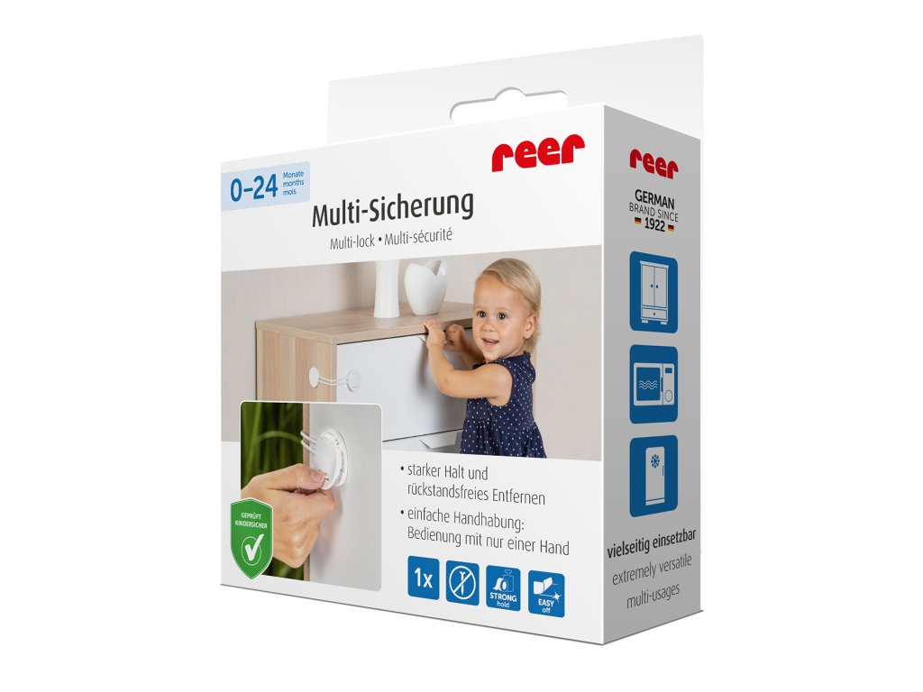 A csecsemők és kisgyermekek maximális védelmének biztosítása érdekében a Reer termékeket szigorú vizsgálati szabványok szerint tesztelik. A Multi-lock zárat a legújabb EN 16948: 2017 szabvány szerint tesztelték. A zárat tesztelték a rögzítési szilárdság, a tartósság és a stressztesztek szempontjából is. Még nagy terhelés esetén is megtartja a fogását, és biztonságosan illeszkedik a bútorhoz. A nyitómechanizmus még hosszabb használat után is változatlan marad, és a gyermek számára továbbra is nehéz kinyitni. Az anyag stabilitása állandó marad. Csak az ilyen szabvány szerint tesztelt zárak biztosítják a megfelelő és biztonságos illeszkedést, és hosszú távú használat után is biztonságos használatot garantálnak.