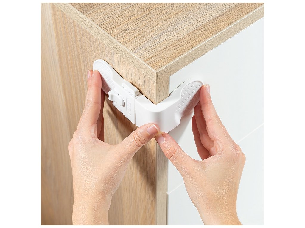 A biztonsági berendezés bármilyen bútorra rögzíthető, amely lehetővé teszi a sarokba szerelést (süllyesztett aljzatokhoz nem alkalmas). Megbízhatóan zárhatja a gyógyszereket vagy éles tárgyakat, például kést vagy ollót tartalmazó szekrényeket és fiókokat. Ezen kívül sík felületű elektromos készülékek is biztosíthatók. Ezzel elkerülheti, hogy gyermeke törékeny tárgyakkal érintkezzen, vagy hogy véletlenül kinyitva leolvasztja a hűtőszekrényt. Egyszerű és modern kialakításának köszönhetően a többbiztosíték bármilyen környezetben használható.