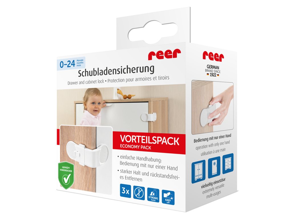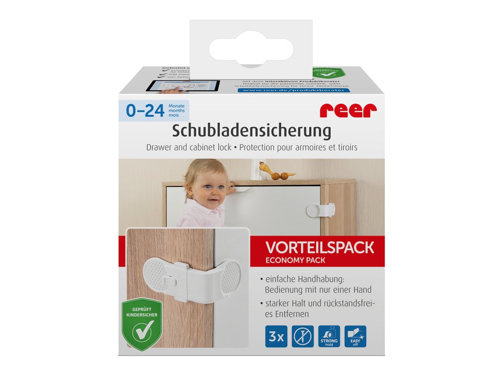 A kisgyermekek és kisgyermekek maximális védelme érdekében a reer termékeket szigorú vizsgálati szabványok szerint ellenőrzik. A termékek nem csak belső teszteken esnek át, hanem független intézetek is tesztelik őket. A Reer ajtó és fiókzár a jelenlegi EN 16948: 2017 szabvány szerint lett tesztelve. Sikeresen átment a tartási, tartóssági és stresszteszteken. Még nagy terhelés mellett is megőrzi tapadóképességét - megbízhatóan tapad egy bútorra. A nyitómechanizmust még hosszú használat után is nehéz kinyitni a kisgyermekek kezének. A gyerekzár robusztus és stabil: nem törik, több mint 5000 nyitás után is olyan stabil, mint az elején.