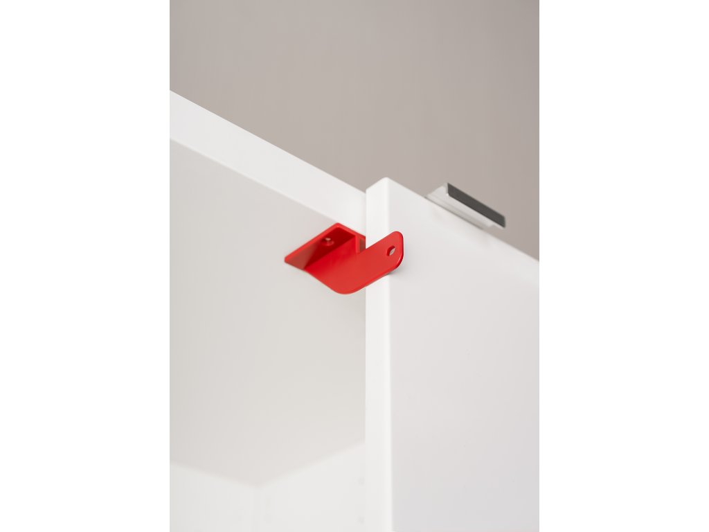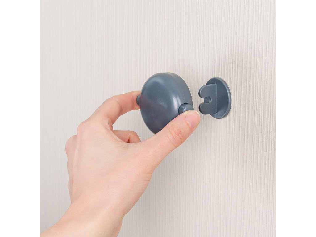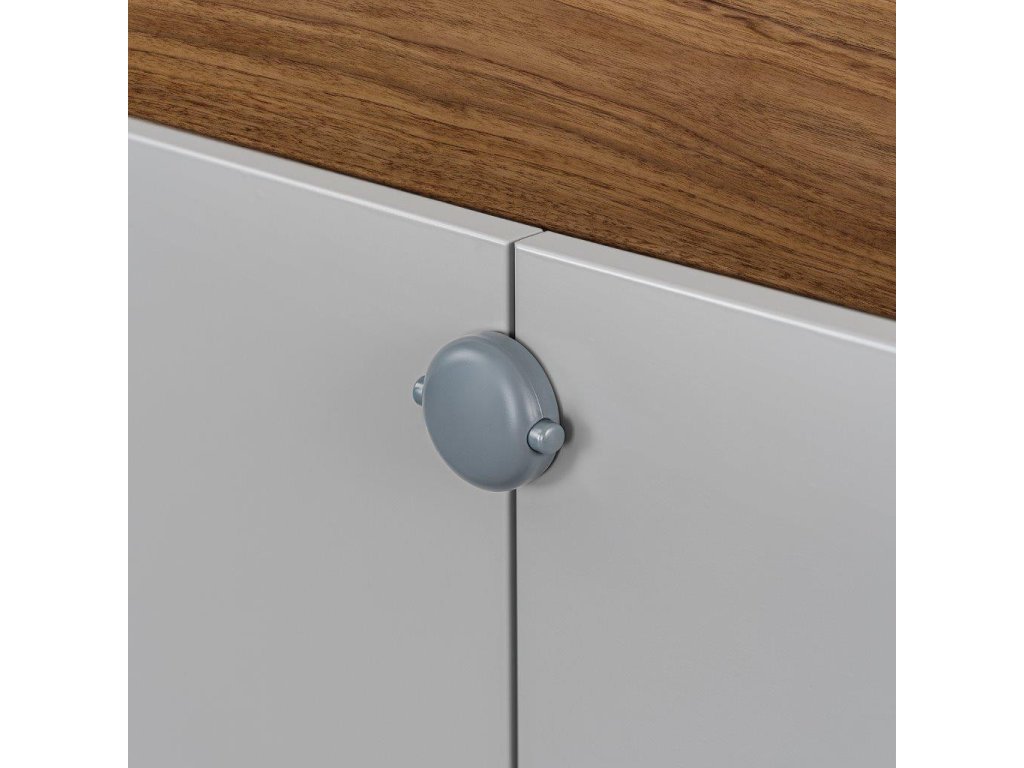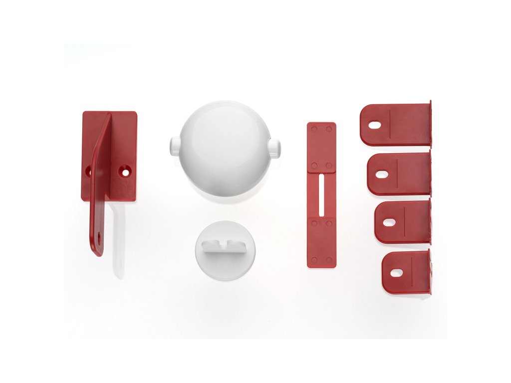 A szekrények és tartalmuk biztonságosan el vannak zárva a kis felfedezők elől. A szekrényt a felnőttek számára is könnyű kinyitni egy kézzel. A csomagban található egy praktikus mágneses fali tartó a zár biztonságos tárolására. A piros jelzés emlékezteti Önt, hogy a zárat újra aktiválja, ha gyermekek vannak jelen.