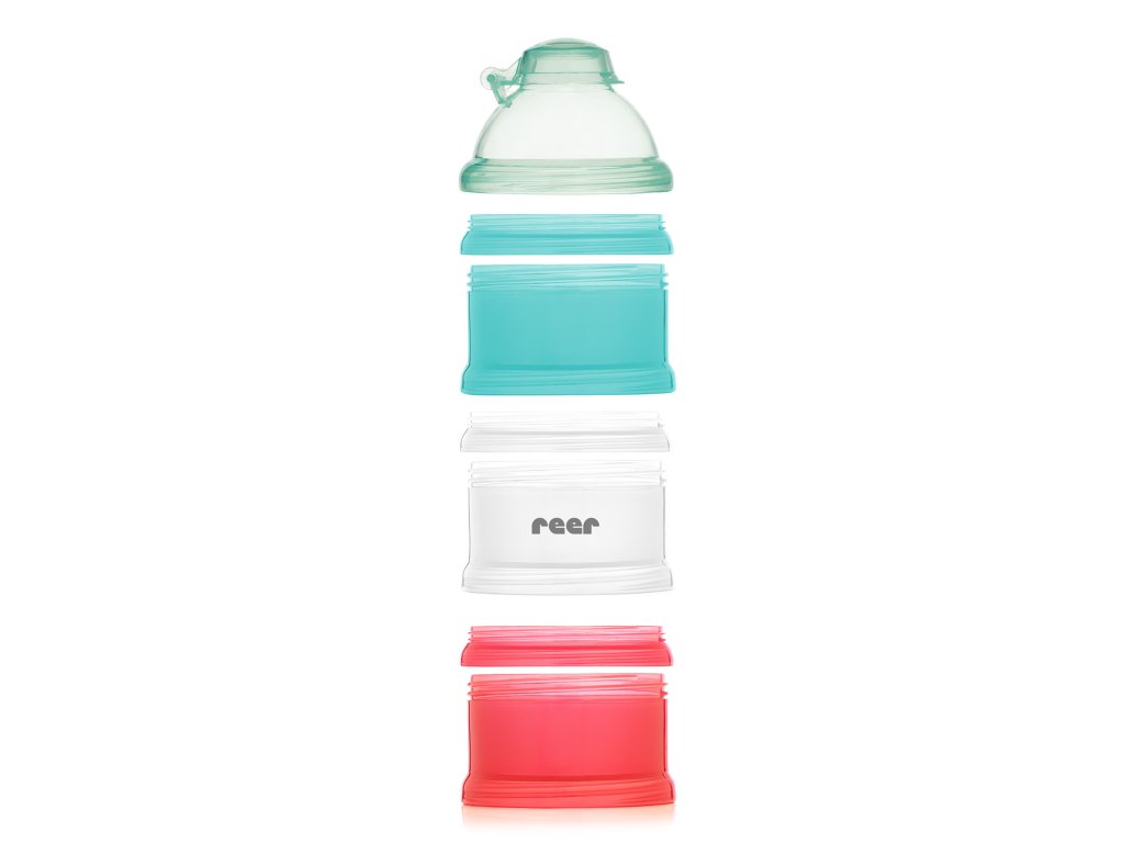 A tejporadagoló - amely 3 tartályból és egy töltőtölcsérrel ellátott kupakból áll - segít a megfelelő mennyiségű, egy adaghoz igazított por előkészítésében, így a tej gyorsan és biztonságosan elkészíthető a csecsemő számára.