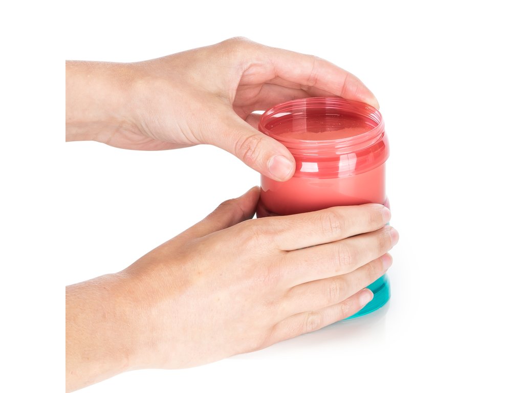 A tartályok extra széles nyílással rendelkeznek, ami megkönnyíti a tejpor beöntését. A nagy nyílásnak köszönhetően a tárolók nagyobb gyermekek számára uzsonnás dobozként is használhatók, például gyümölcs, keksz, müzli számára, amelyek kéznél lesznek, ha gyermeke megéhezik az úton.