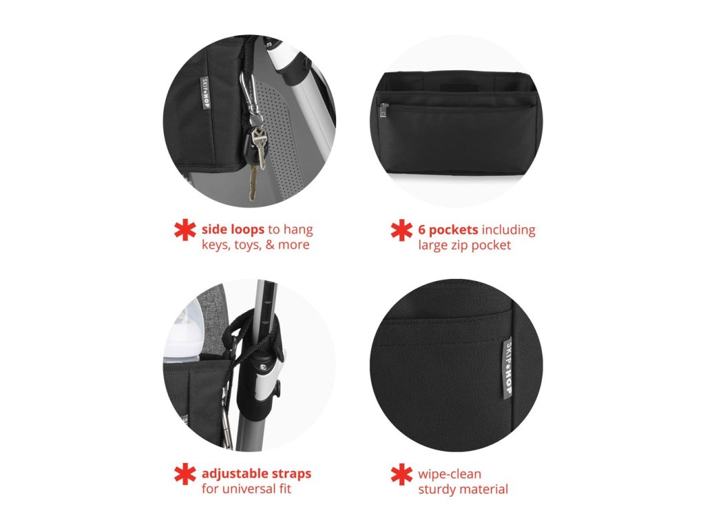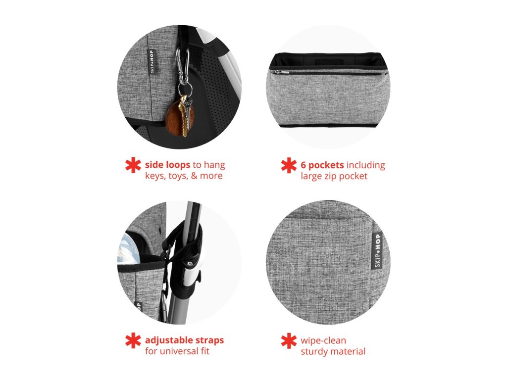 Az Ultra szervezőt úgy tervezték, hogy minden eddiginél több dolgot elférjen benne utazás közben, így ideális társ a babakocsin való kirándulásokhoz. Hat rekeszével könnyedén rendszerezheti a holmikat, az oldalsó hurkokra pedig kulcsokat, játékokat és egyéb apróságokat is felakaszthat. A három belső rekesz tökéletesen alkalmas nagy palackok és poharak tárolására – biztonságosan rögzítve és könnyen elérhetően. Az állítható pántokkal egyszerűen rögzíthető bármilyen babakocsihoz, így mindig minden kéznél lesz, ha úton van.