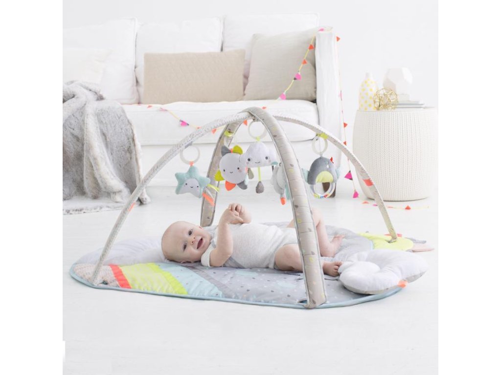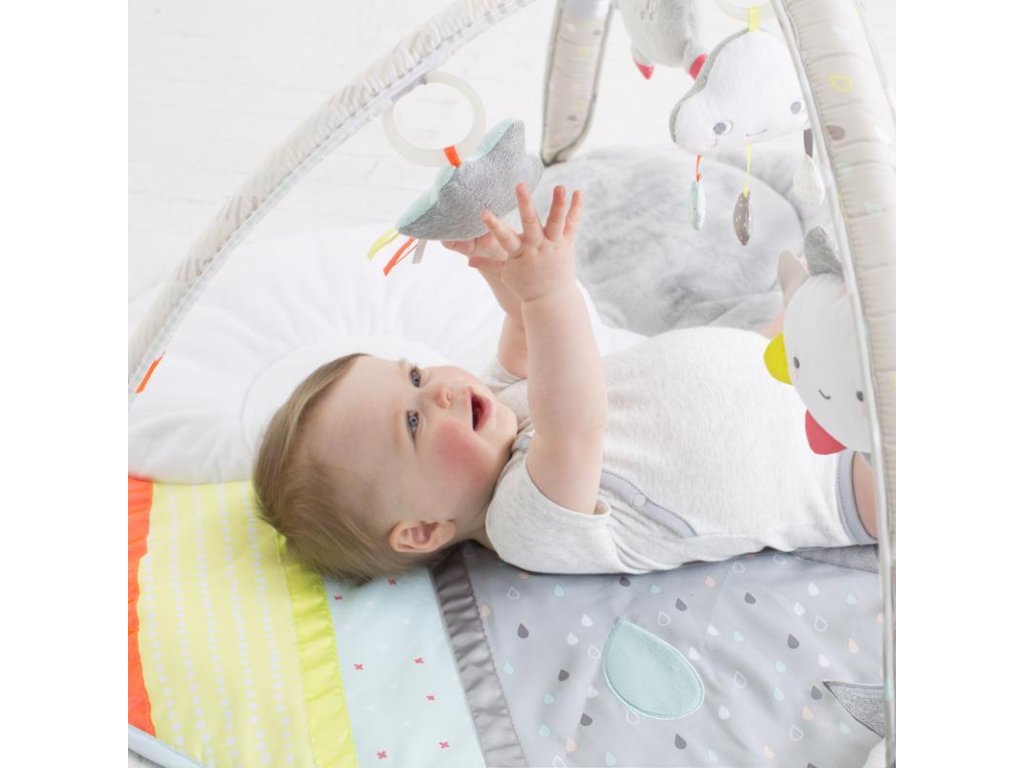 A „Silver Lining” kollekció részeként megálmodott játékszőnyeg a Skip Hop-tól nemcsak gyönyörű, hanem a babák érzékszervi fejlődését is aktívan támogatja. A finom, pasztellszínű Minky anyagból készült puha játszószőnyeg vidám függő játékokkal és különböző tapintású részletekkel teszi izgalmassá a felfedezést fekve és hason is.