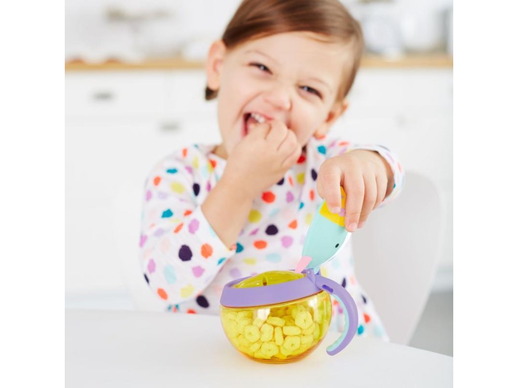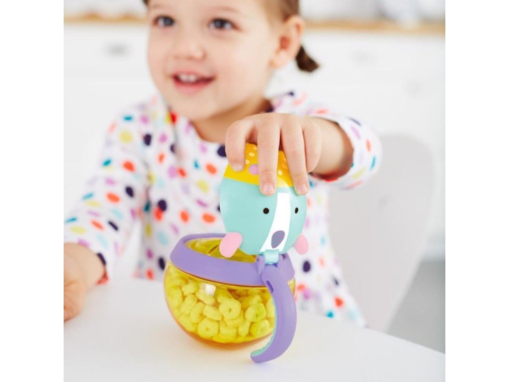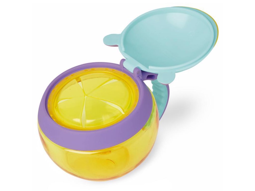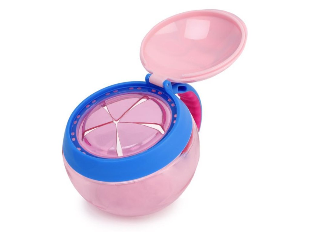 Vége a szétszórt kekszeknek és a síró gyerekeknek! Ez a praktikus pohár biztonságban tartja a gyermek nassolnivalóit, és megakadályozza, hogy kiszóródjanak.A puha fedélen keresztül a gyermek könnyedén benyúlhat a kezével. Praktikus fogantyúval van ellátva. Az átlátszó anyag lehetővé teszi, hogy mindig látható legyen a tartalom, így szükség esetén egyszerűen újratölthető.