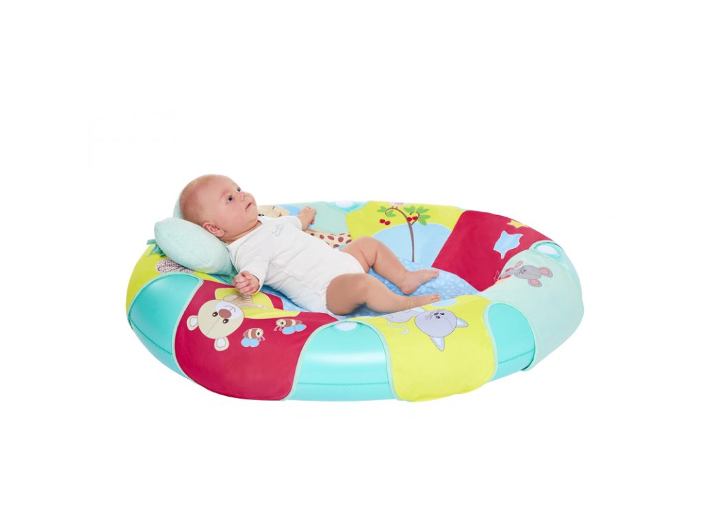 Ez a kényelmes játszószőnyeg felfújható matracot, játékokkal ellátott játékhidat és textil borítású szőnyeget tartalmaz, amelyek segítik a baba érzékszerveinek fejlődését.