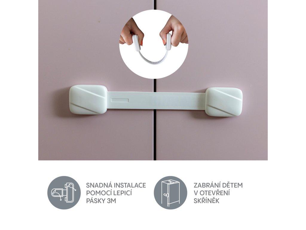 A kíváncsi gyerekek gyakran kinyitják a szekrényeket és a fiókokat, ami nagyon veszélyes lehet. Az állítható univerzális szekrényzár úgy lett megtervezve, hogy megakadályozza a gyermekeket abban, hogy hozzáférjenek a szekrényekben található veszélyes tárgyakhoz, ezáltal biztonságot és nyugalmat nyújtva a szülőknek. Alkalmas minden sík felületre, és hossza igény szerint állítható.