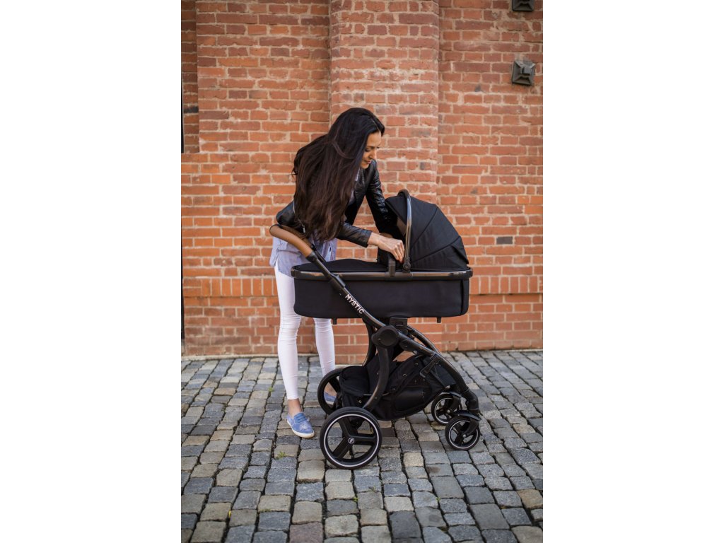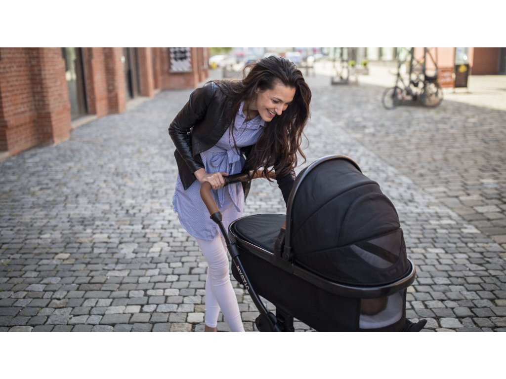 A mózeskosár a méreteinek köszönhetően garantálja a gyermek kényelmét még bundazsákban is, ráadásul a lábzsák elülső része biztosítja a gyermek védelmét a széltől. A nyári hónapokban a szülők nagyra értékelik majd a mózeskosár előtetőjén és az elülső részén lévő szellőzést. A babakocsi matraca levehető és mosható huzattal rendelkezik. A babakocsi alváza állítható magasságú fogantyúval és mágneses meghosszabbításokkal ellátott kosárral rendelkezik. Az automatikus első kerékrögzítésnek és az első és hátsó kerekek felfüggesztésének köszönhetően a babakocsi könnyebb terepen is használható. Az alváz könnyen összecsukható, összecsukott állapotban magától megáll, és az összecsukódás elleni biztonsági zárnak köszönhetően könnyen kezelhető.