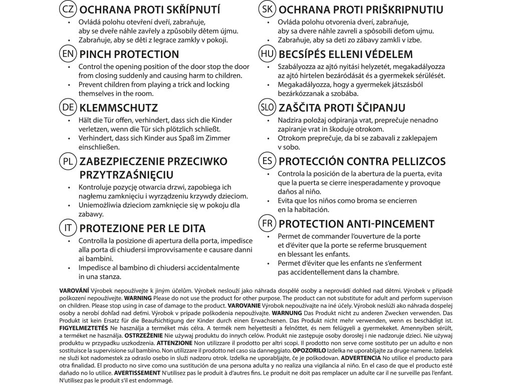 - Megakadályozza az ajtó hirtelen becsukódását és a gyermek sérülését