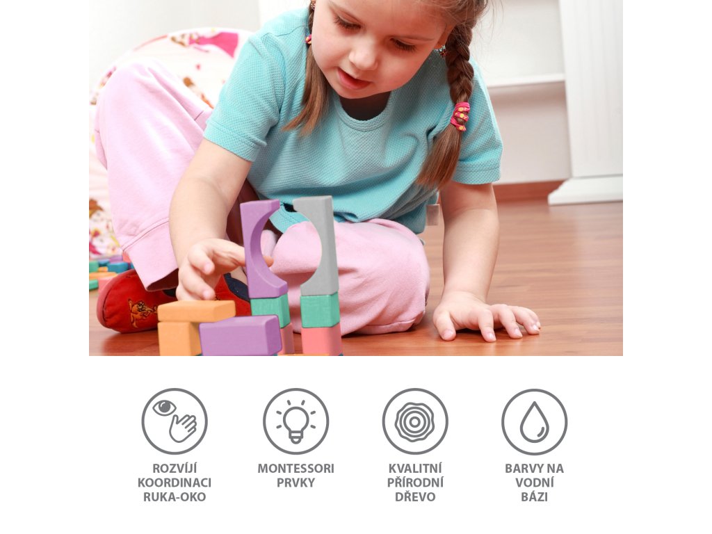 A fa kockák ideális játékszerek a gyermekek gondolkodásának és kreativitásának fejlesztéséhez. Ezekkel a kockákkal a gyerekek végtelen lehetőségeket fedezhetnek fel az építkezésre és egymásra rakásra. A készlet különböző formákat és színes blokkokat tartalmaz, amelyek támogatják a térbeli és logikus gondolkodás, a szem-kéz koordináció és a kreativitás fejlesztését. A gyerekek elmerülhetnek a saját maguk által létrehozott tornyok, épületek és egyéb építmények építésében. Ezek a blokkok nagyszerű módja annak, hogy elektronika nélkül szórakozzunk, és ösztönözzék a fizikai aktivitást és a tárgyak manipulációját. A kockák több órányi szórakozást biztosítanak, és támogatják a kreativitás, a térbeli és a logikus gondolkodás fejlődését.