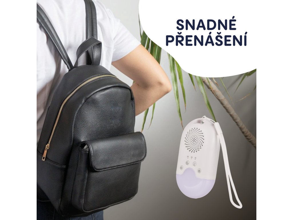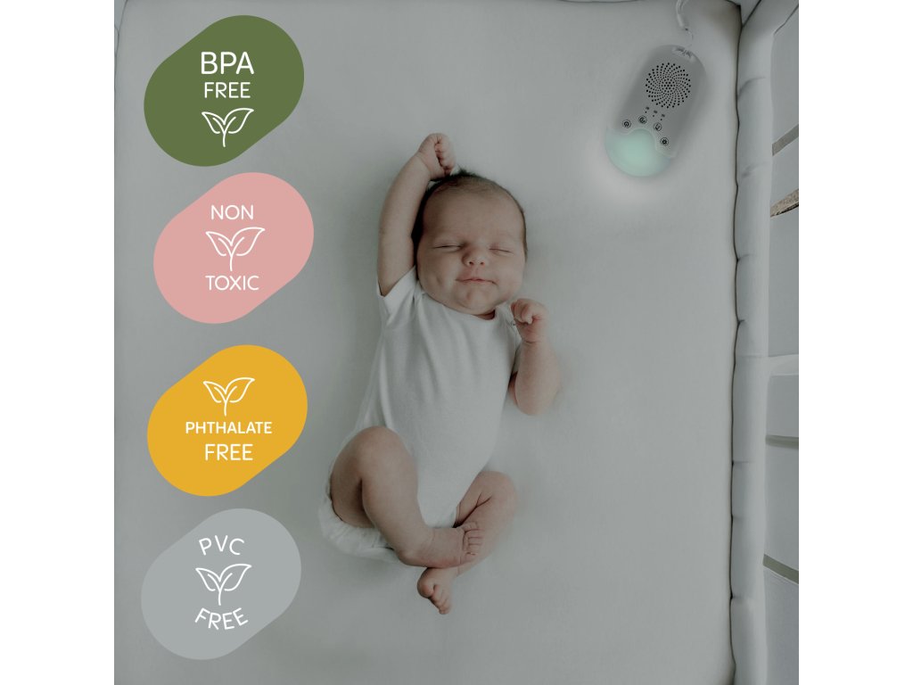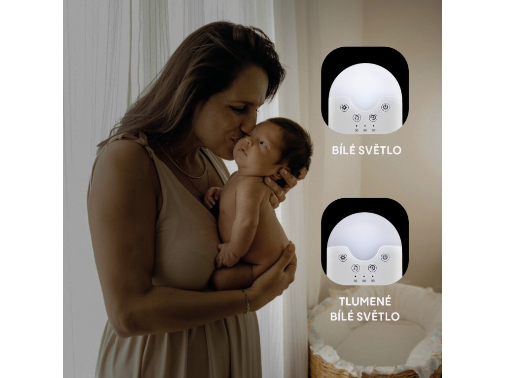 A modul szabályozható fehér fénnyel rendelkezik, amelyet könnyedén az aktuális igényekhez igazíthat. Vidámabb hangulatért választhatóak a váltakozó RGB színek, amelyeket megállíthat kedvenc színénél. Emellett a készülék 8 megnyugtató hangot és dallamot játszik le, beleértve a népszerű fehér zajt is, amely segít a babának gyorsabban megnyugodni és elaludni.