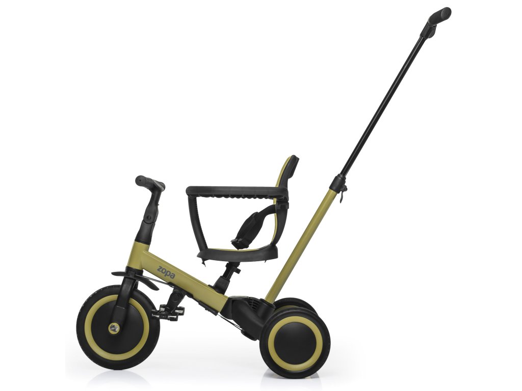 A 4TRIKE összecsukható tricikli három funkciót egyesít egyben: mini tolókerék (1 éves kortól), egy mini futóbicikli és egy pedálos tricikli.