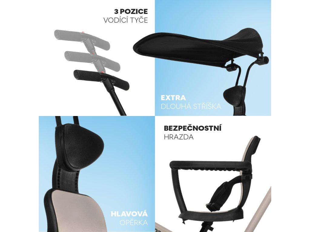 A RITO tricikli a lehető legbiztonságosabb és legkényelmesebb sétákat kínálja gyermekével! UPF 50+ védelmet biztosító napellenző, kétféle dőlésszögbe állítható háttámla,...