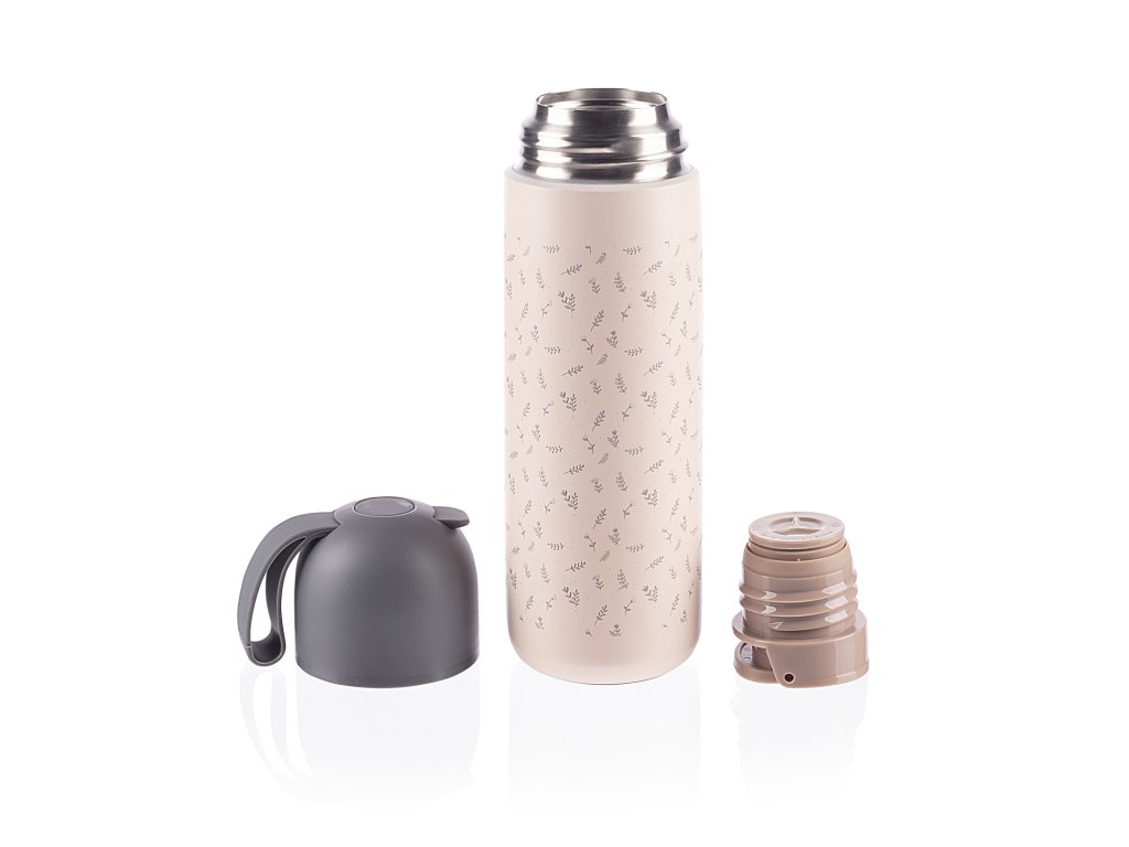 A kiváló minőségű, 400 ml térfogatú, folyadékokhoz való termosz akár 12 órán át megőrzi a forró italokat, a hideg italokat pedig akár 24 órán át. Kiváló minőségű rozsdamentes acélból készült, amely ellenáll a korróziónak. A szorosan záródó fedél gondoskodik arról, hogy a termosz ne szivárogjon, a kényelmes kiöntést biztosító felső kupak pedig azt, hogy a folyadék még durva úton sem folyjon ki, a dupla kupaknak köszönhetően biztos lehet benne, hogy a gyerek nem fog öntse ki a folyadékot a termoszból. A termosz fedele bögreként is használható.