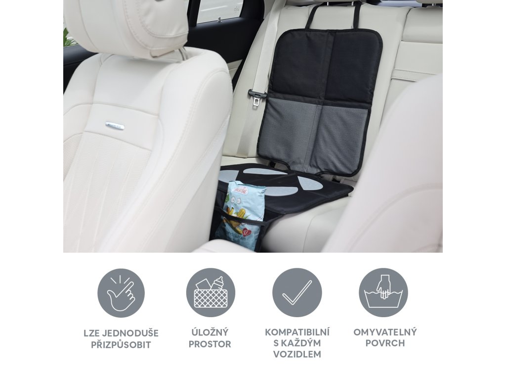 Rugalmasság, amelyet minden család értékelni fog! Ez a védő ülésvédő két részre osztható - az egyik rész a lökhárító védelmére használható, a másik pedig a hátsó ülés alját védi. A két rész összekapcsolásával egy magas védelmet biztosító védőt kapunk, amely maximális védelmet nyújt a hátsó ülések számára.