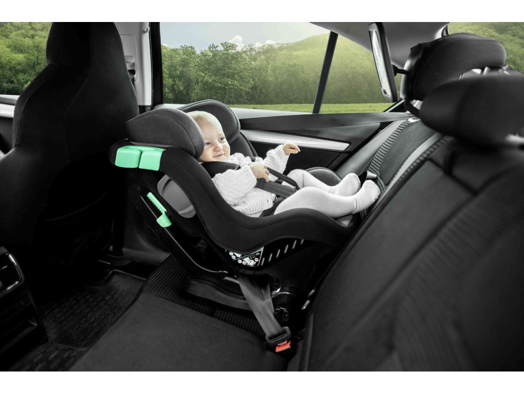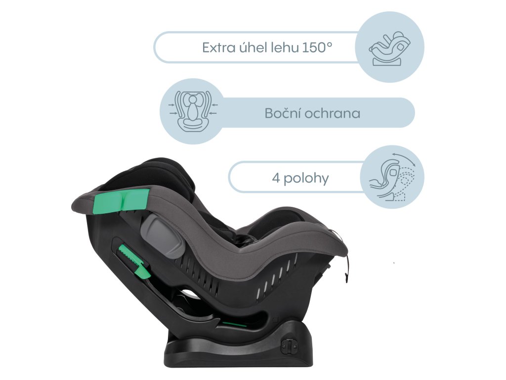 - Az extra fekvőhelyzet (150°-os szög) hatékonyan mérsékli a gyermekre ható erőket vészfékezés vagy ütközés esetén