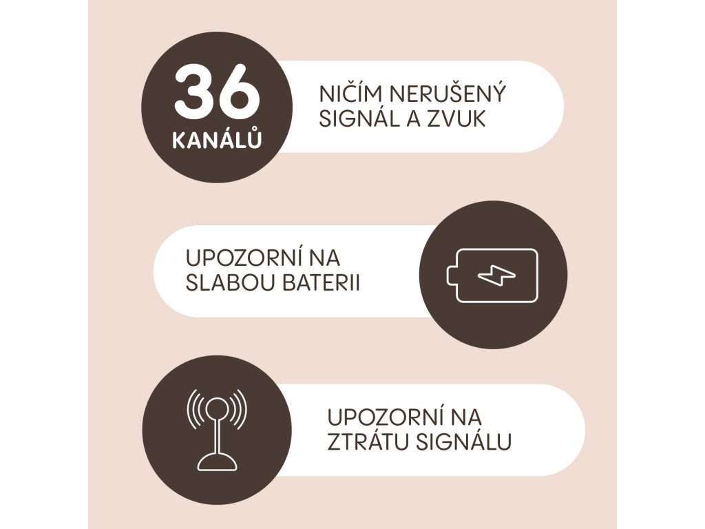 A zsebre tehető, praktikus Watcher digitális bébiőr megbízható segítőtársa lesz, bárhol is tartózkodjon. Akár 300 méteres hatótávjának és tiszta, zajmentes hangjának köszönhetően gyermekét mindig biztonságban tudhatja. Mind a szülői, mind a babaegység lítium akkumulátorral van felszerelve, USB-C töltéssel, így nincs szükség állandó áramforrásra. Nyugalma érdekében a készülék automatikusan figyelmeztet a jel elvesztésére vagy az alacsony akkumulátorszintre.