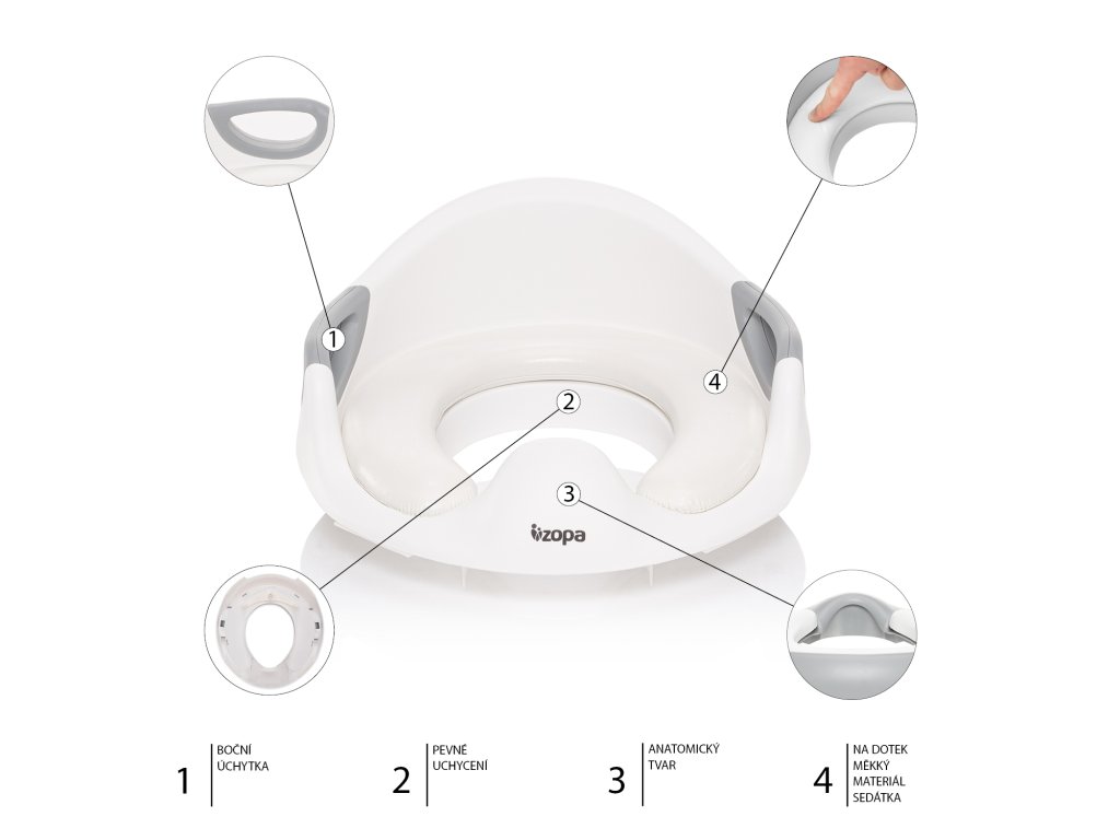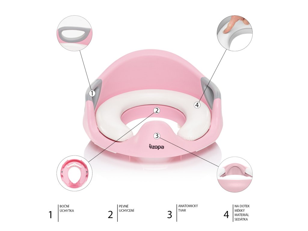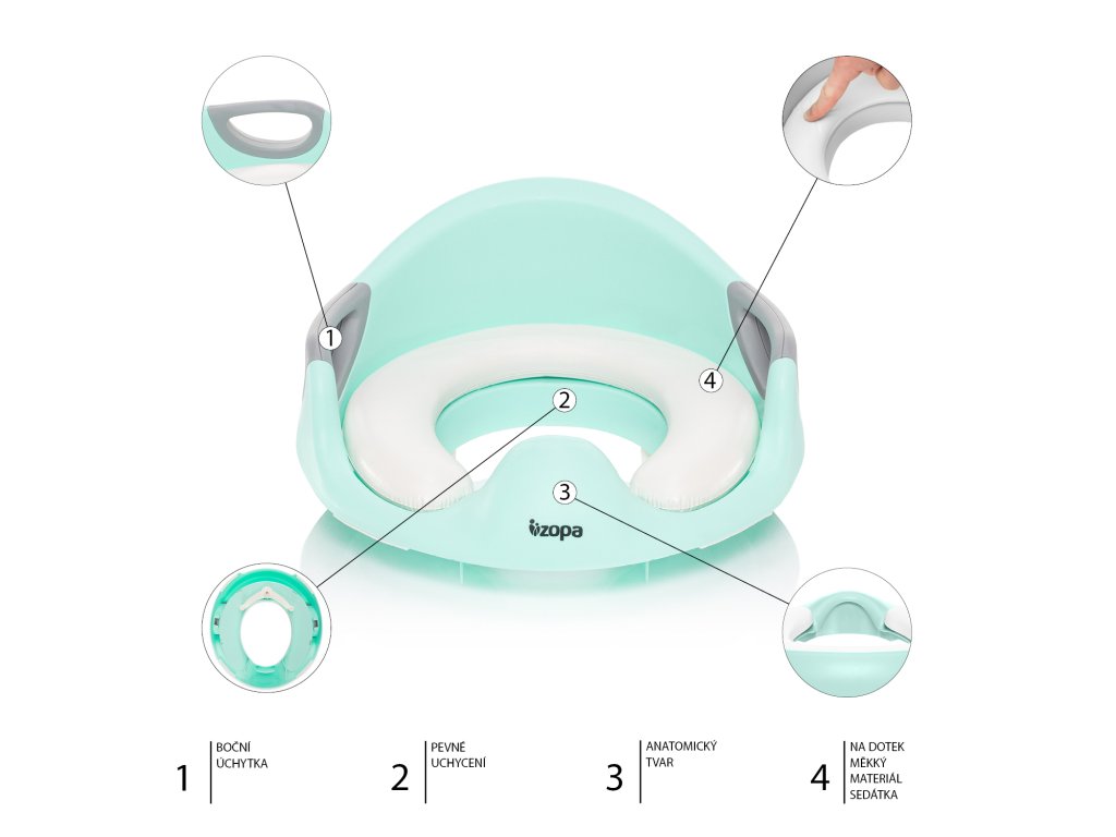 A biliről a normál WC-re való átállás minden gyermek számára nagy változás. Egy praktikus segédeszközzel – a ZOPA Coach WC-ülőkével – azonban ezt játékosan megteheti. Az ülés strapabíró, nem mérgező, BPA-mentes műanyagból készült, amelyet biztonsági szempontból teszteltek. A maximális kényelem érdekében a masszív ülésszerkezetre puha, vízálló, repedéseknek és deformációknak ellenálló bélés van rögzítve. Az ügyesen elhelyezett fogantyúk támasztást nyújtanak ülés közben.